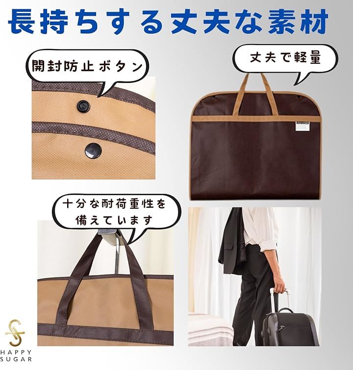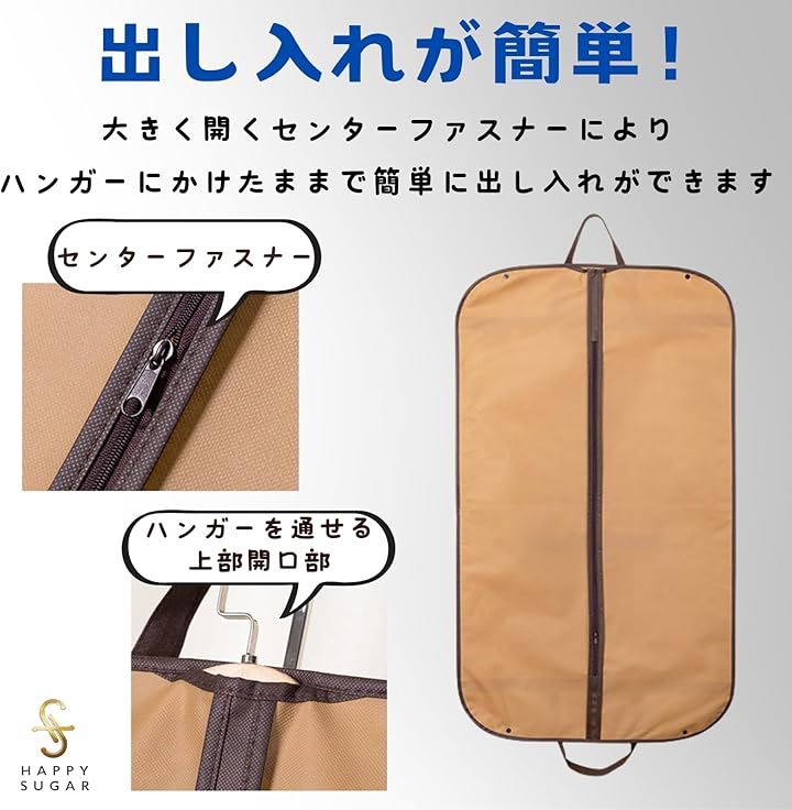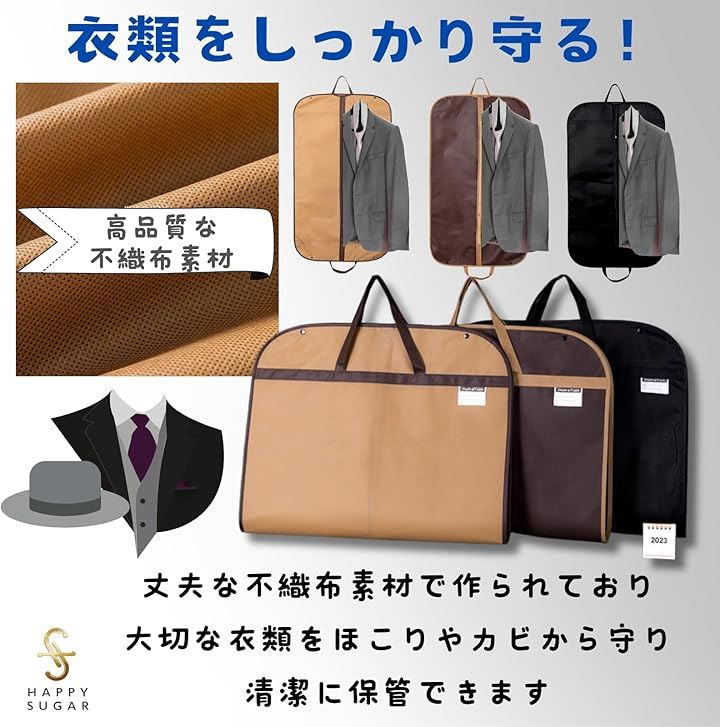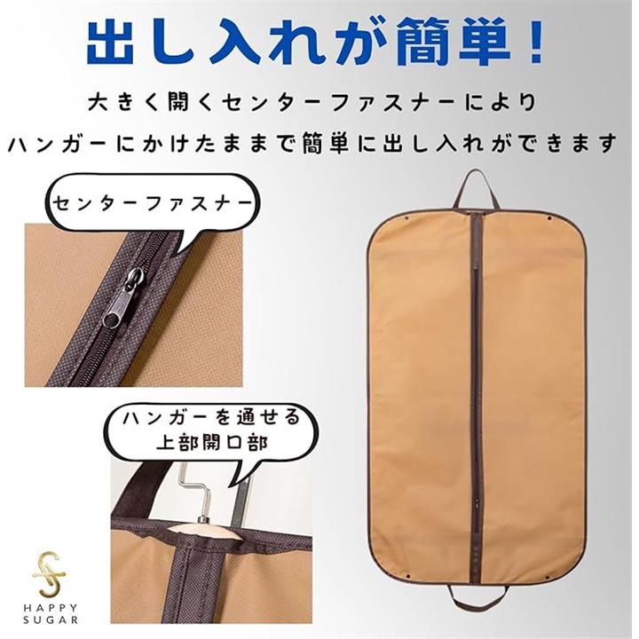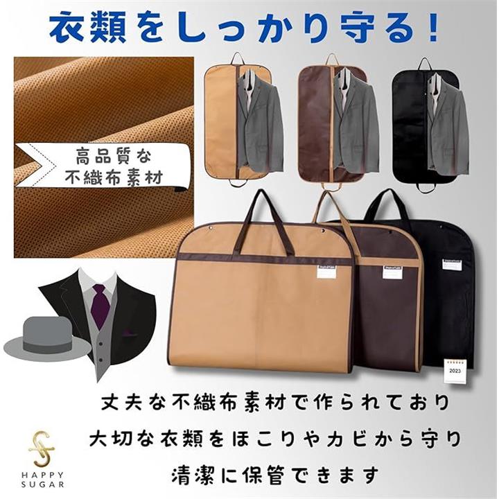 スーツカバー 衣装カバー 衣類カバー 洋服カバー コートカバー 持ち運び 不織布 ガーメントバッグ 礼服 ファスナー 持ち手付き
