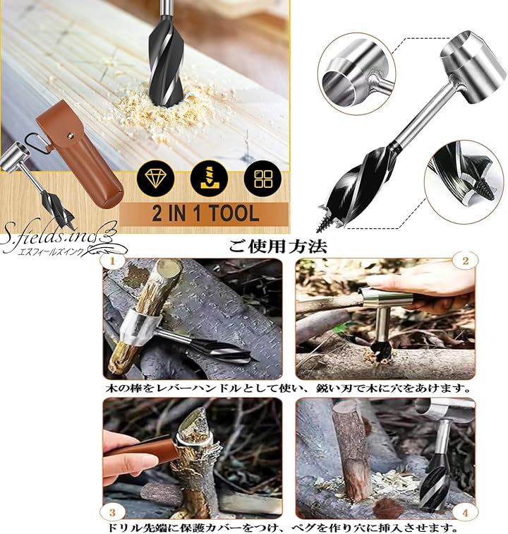 短捻リングオーガー ハンドオーガー 穴あけドリル 手動 サバイバル キャンプ アウトドア