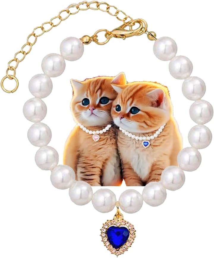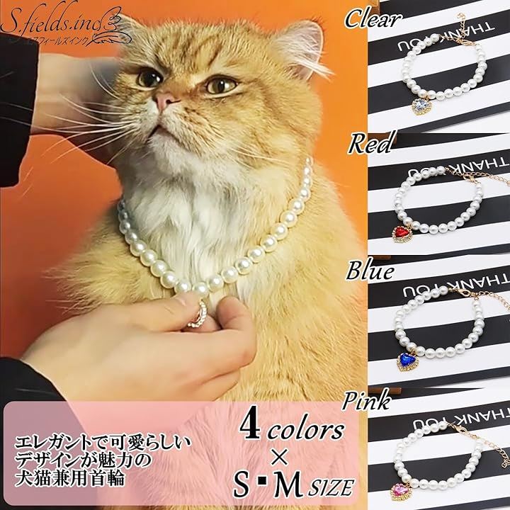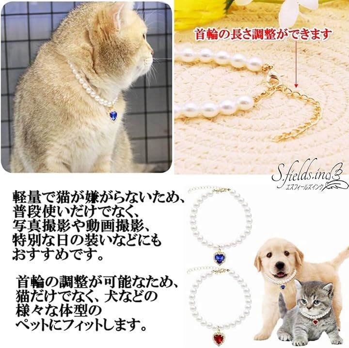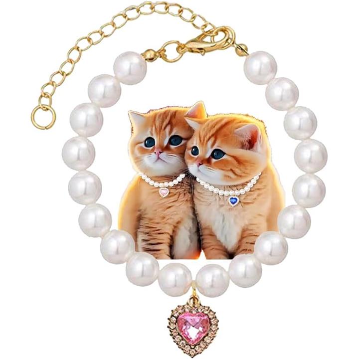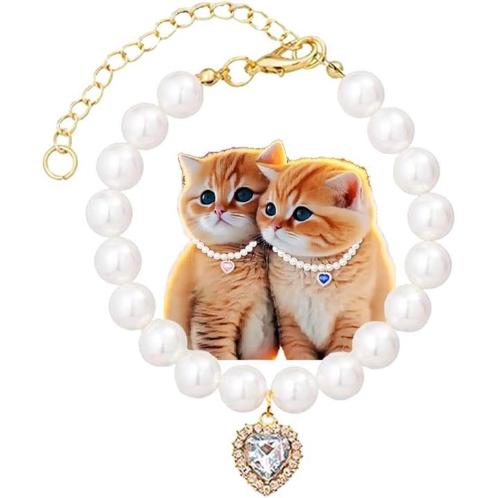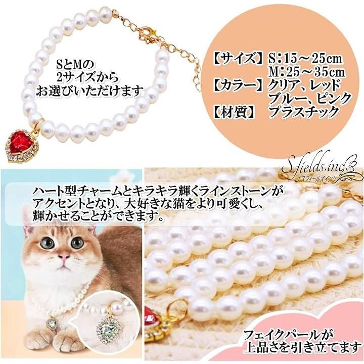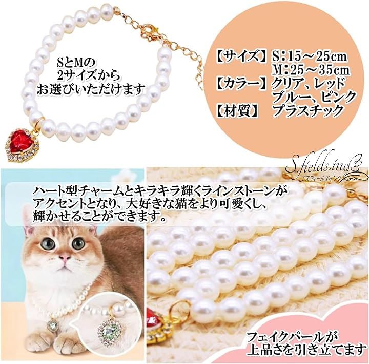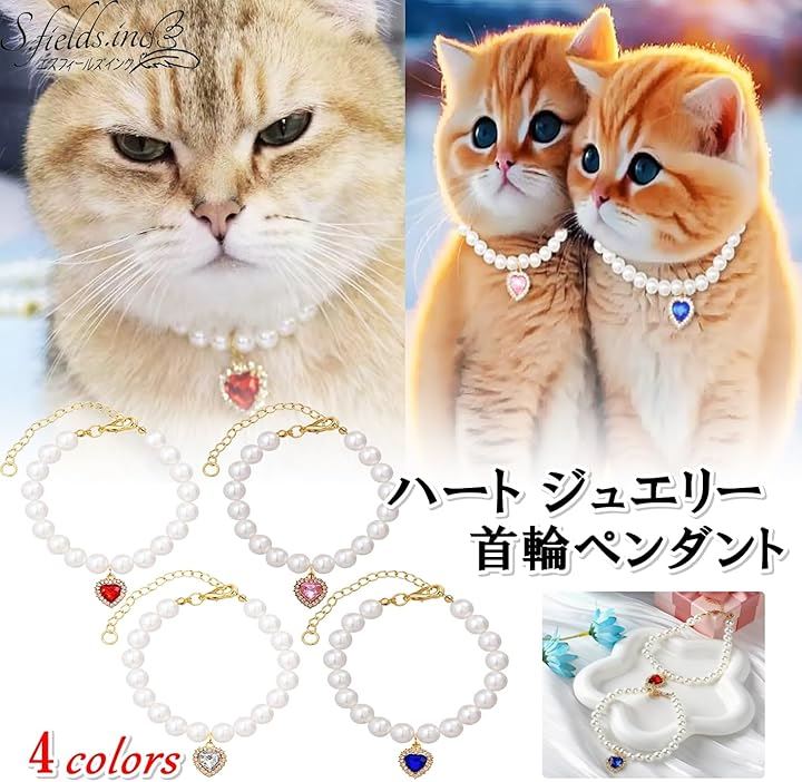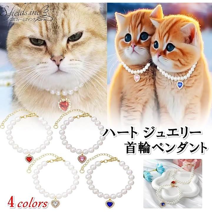 猫用首輪 チャーム ペンダント ハート ジュエリー フェイクパール ラインストーン 犬猫兼用
