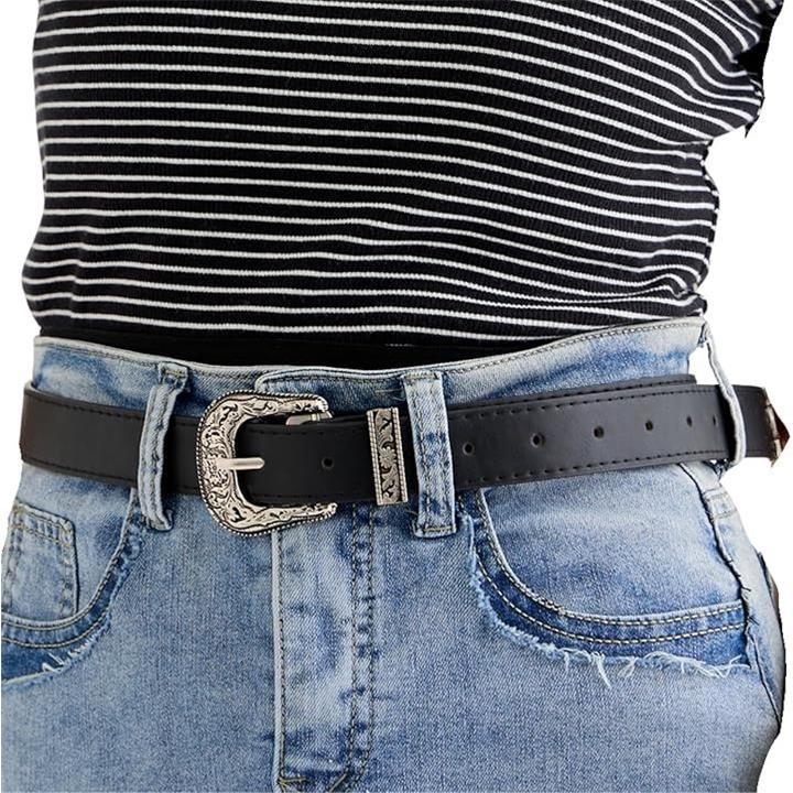 ベルト レトロ 彫刻バックル PUレザー 105cm レディース 調節可能 カジュアル アンティーク デザイン
