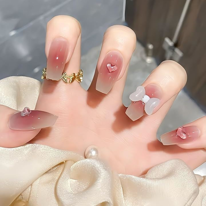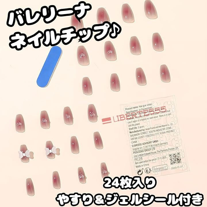 ネイルチップ バレリーナ 3d 韓国 可愛い フレンチ つけづめ つけ爪 シンプル nail