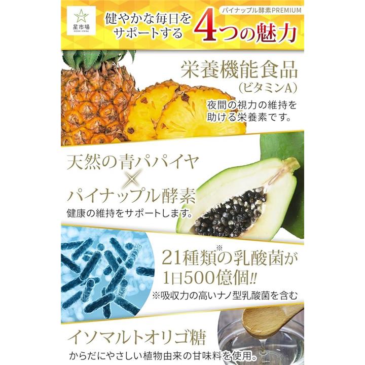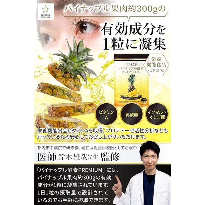 パイナップル酵素 サプリ 医師監修 栄養機能食品 パイナップル1個分の果肉成分を1粒に凝縮21種類の乳酸菌 国内工場製造 30日分 30粒入 3袋セット ビタミンA