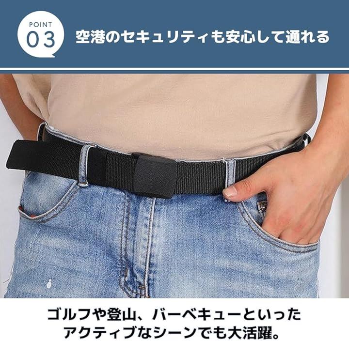 ナイロンベルト 幅広い用途に メンズ カジュアル 金属不使用 空港OK 2個セット