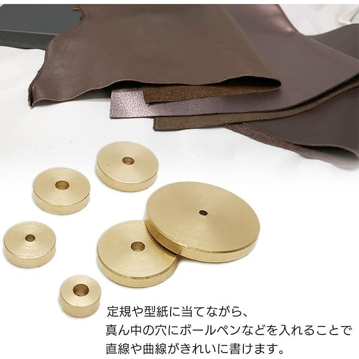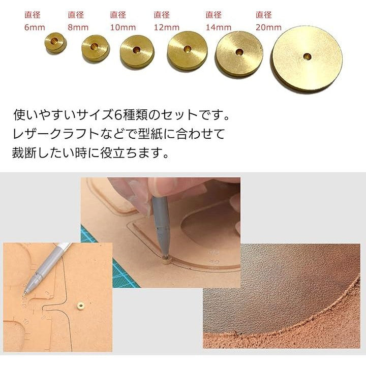 レザークラフト 丸 定規 型取り ガイドゲージ 真鍮 工具 丸ヘリヘリ落とし 6個 セット 6mm ~ 20mm SN-300-MJ