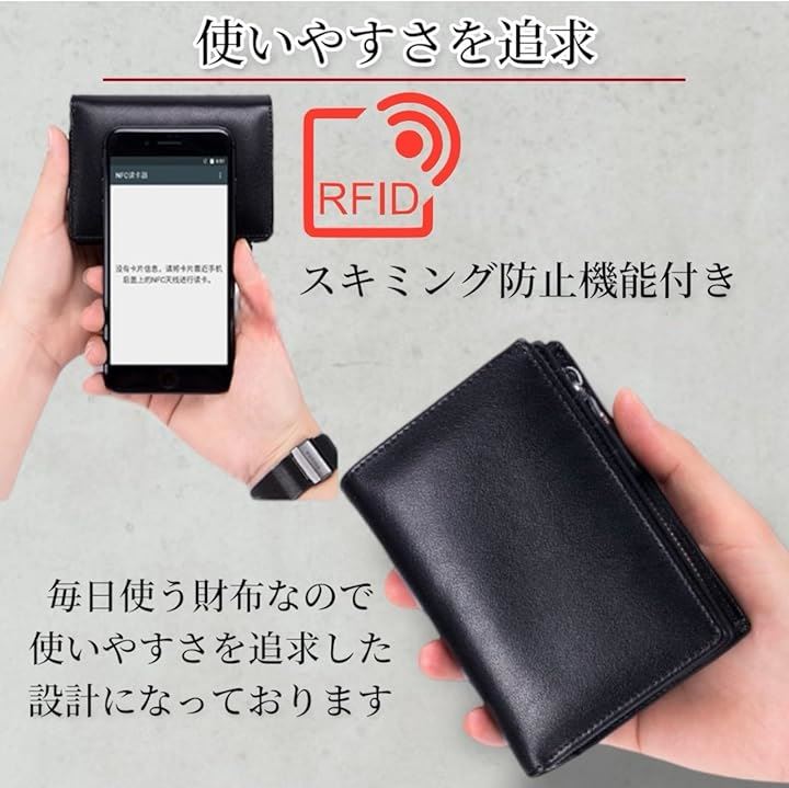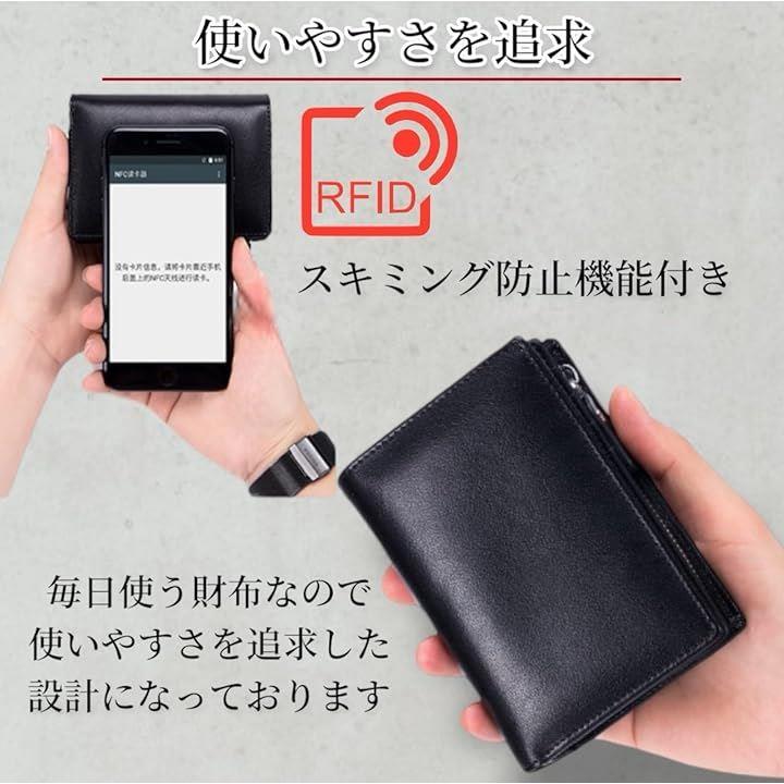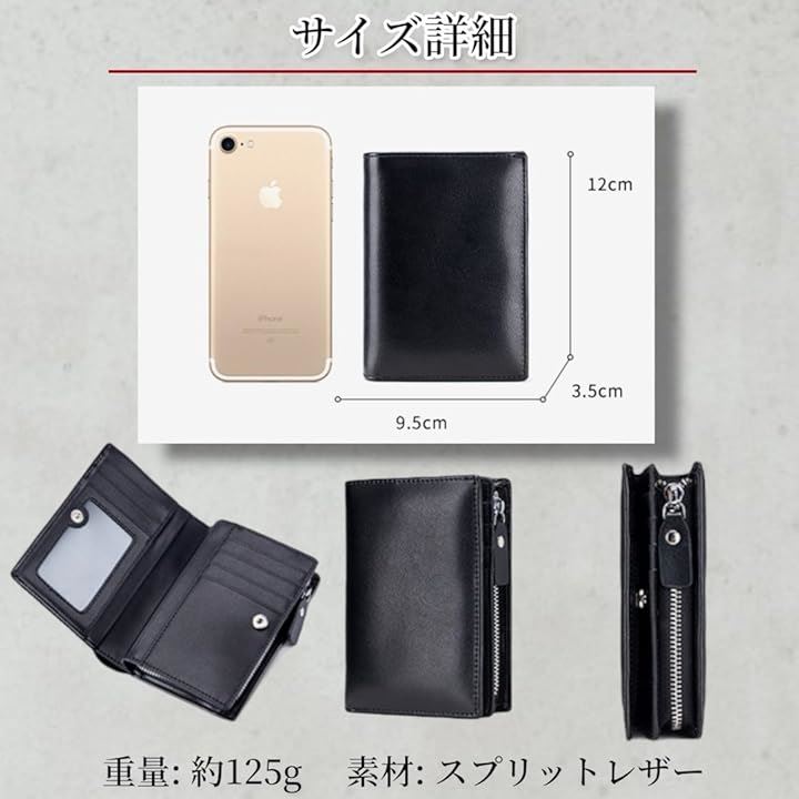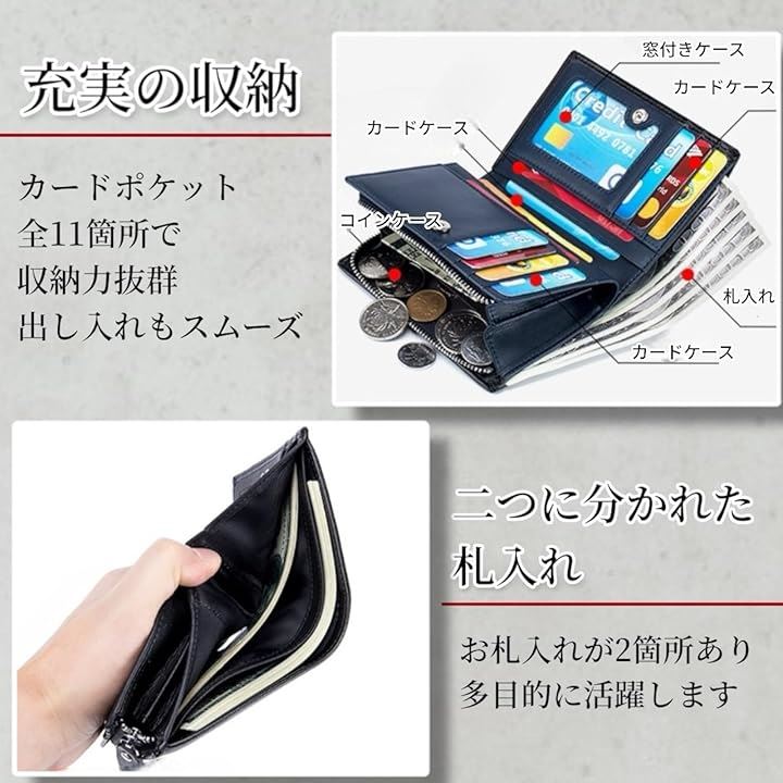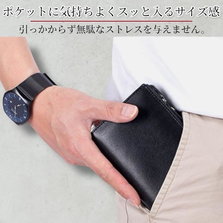 二つ折り財布 L字型ファスナー メンズ レザー 大容量 コンパクト ミニ財布 小さい財布 2つ折り 小銭入れ有り シンプル 無地 カード収納