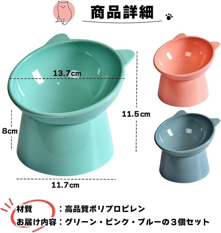 愛猫家の声から誕生した フードボウル 3個セット 餌入れ 水飲み 食器 ご飯皿 えさ 食べやすい