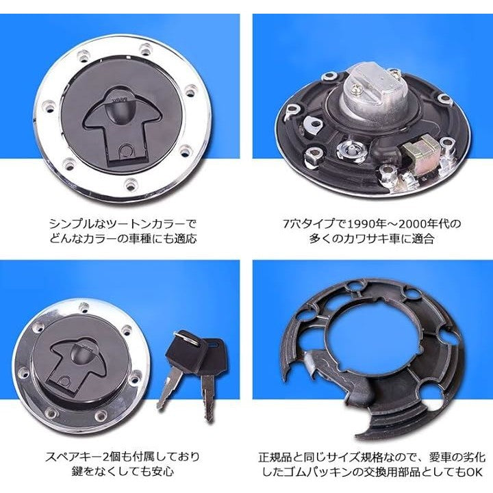 カワサキ ガソリンタンクキャップ 鍵付き 汎用 燃料タンク ゴムパッキン交換 蓋 7穴 ゼファー400 ZZR250/400 ZRX400 ZXR250/400 バイク 部品 ツーリング メンテナンス