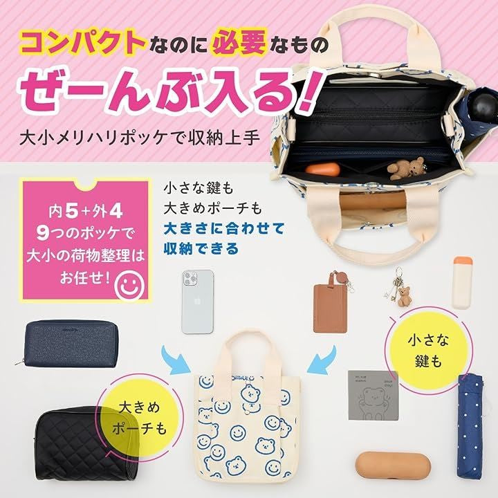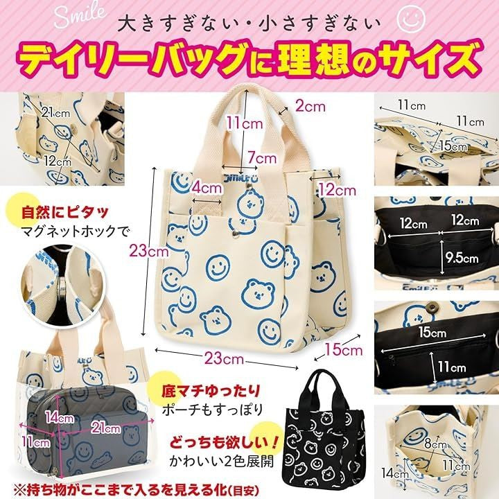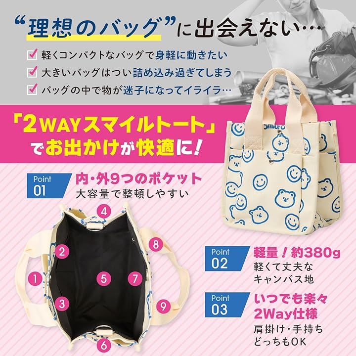 トートバッグ キャラクター スマイル ショルダーバッグ キャンバス ミニトート