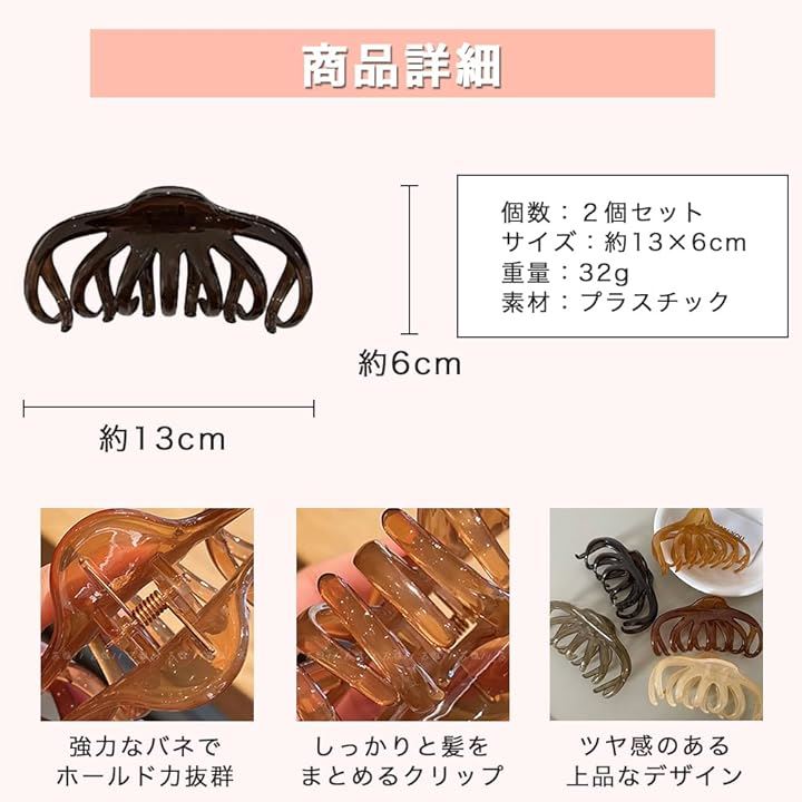 ロドリーミシェ 13cm ヘアクリップ 大きめ シッカリトマル 毛量多い 髪留め 大きい バンスクリップ 可愛い ヘアアクセサリー No20