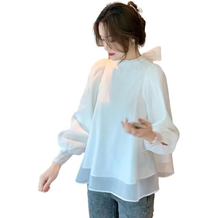 「優美に揺れるバックリボンのブラウス」