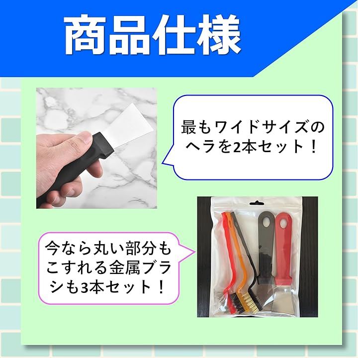 カリカリ 水垢 落とし 水垢落とし用ヘラ 掃除用ヘラ 最大ワイド版 金属ブラシセット 蛇口 レンジフード 強力