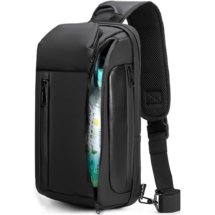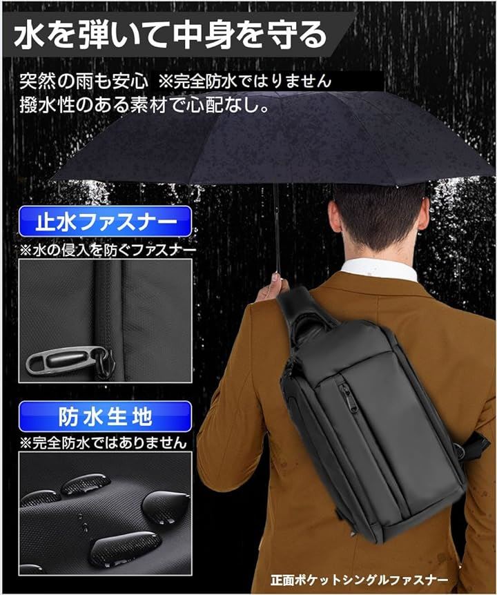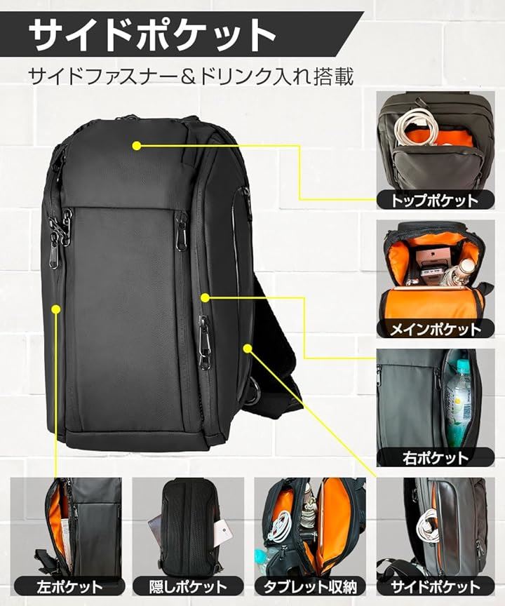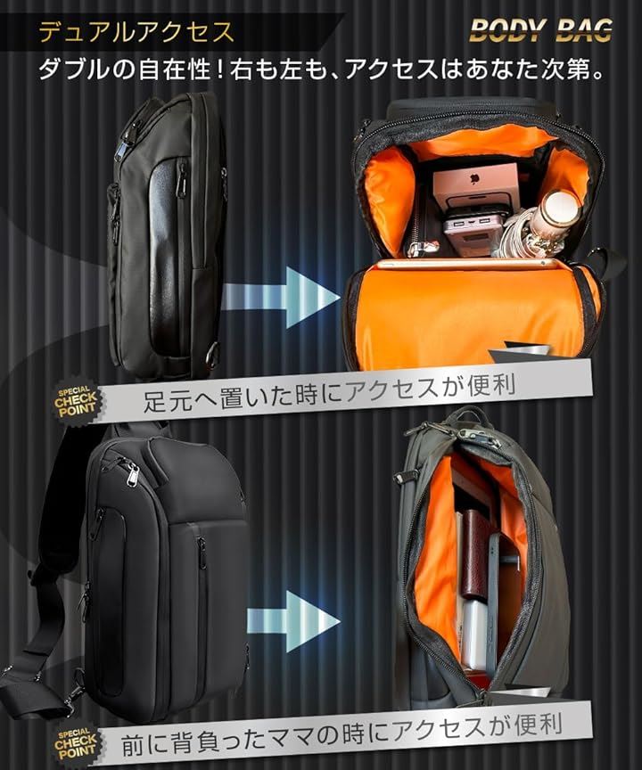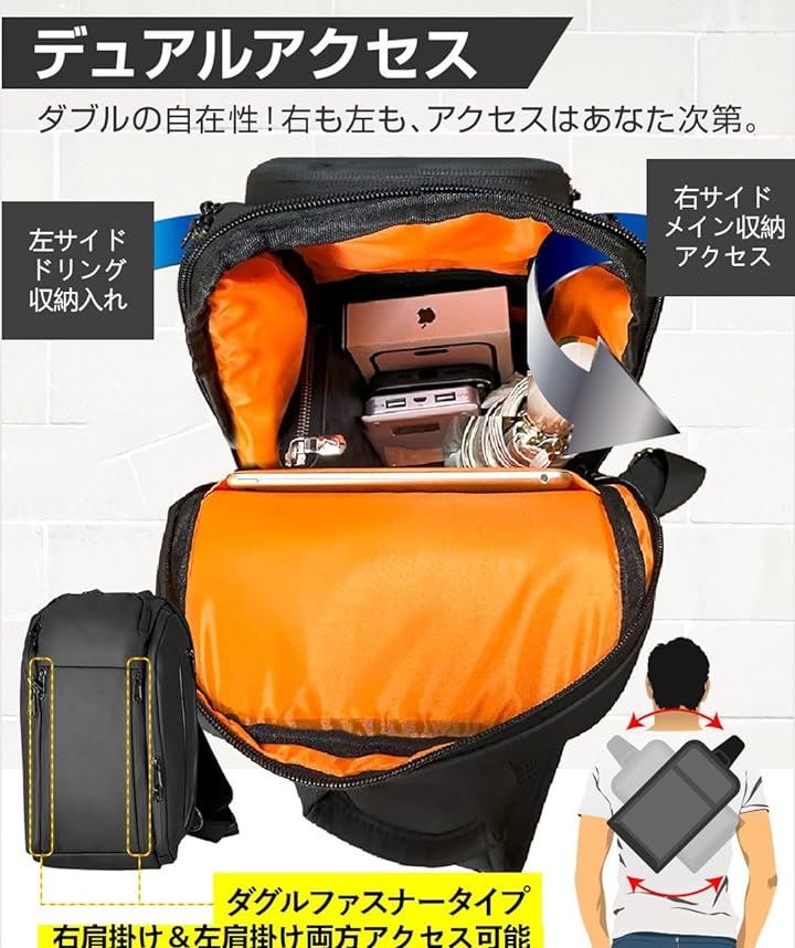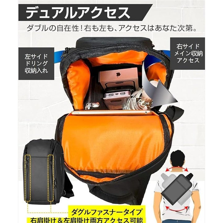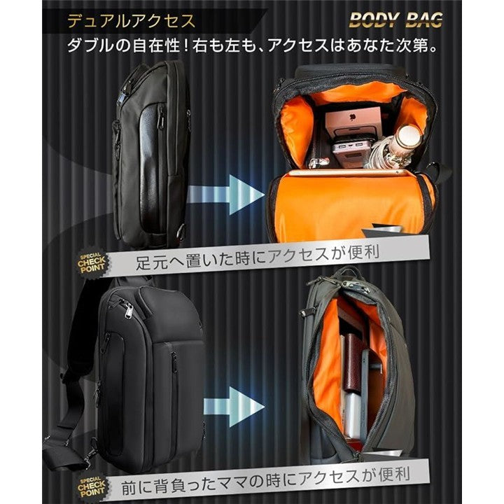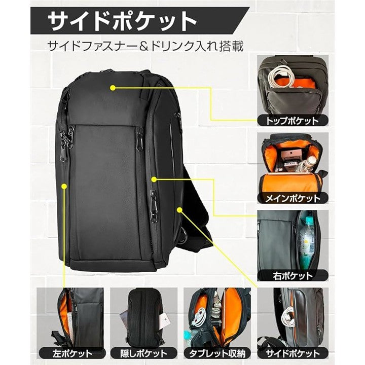 ボディバッグ ドリンクホルダー付き ショルダーバッグ 斜め掛け 大容量 メンズ 止水ファスナー ブラック 多機能 機能増加モデル