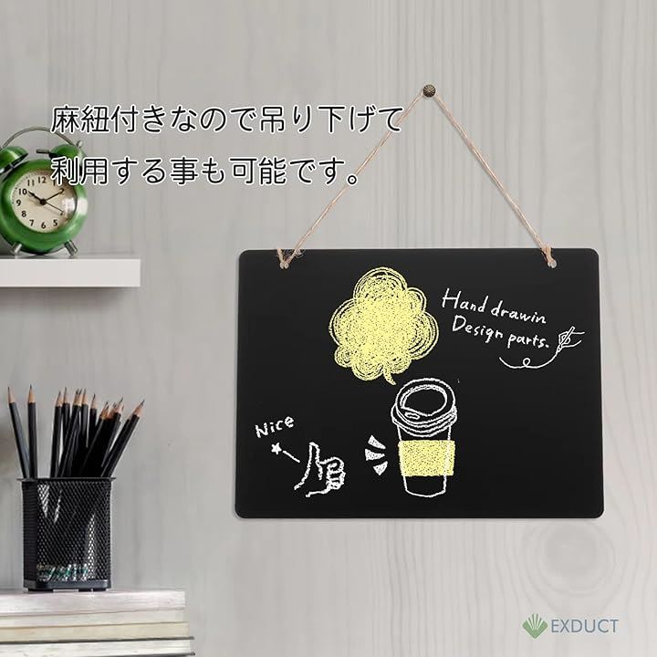 黒板 ブラックボード 吊り下げ 立てかけ 両面使用可 麻ひも 看板 掲示板 メニューボード 黒板ボード