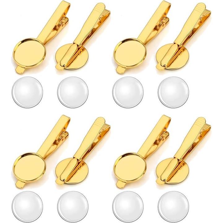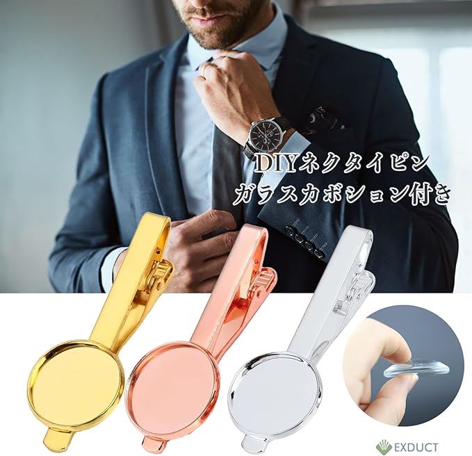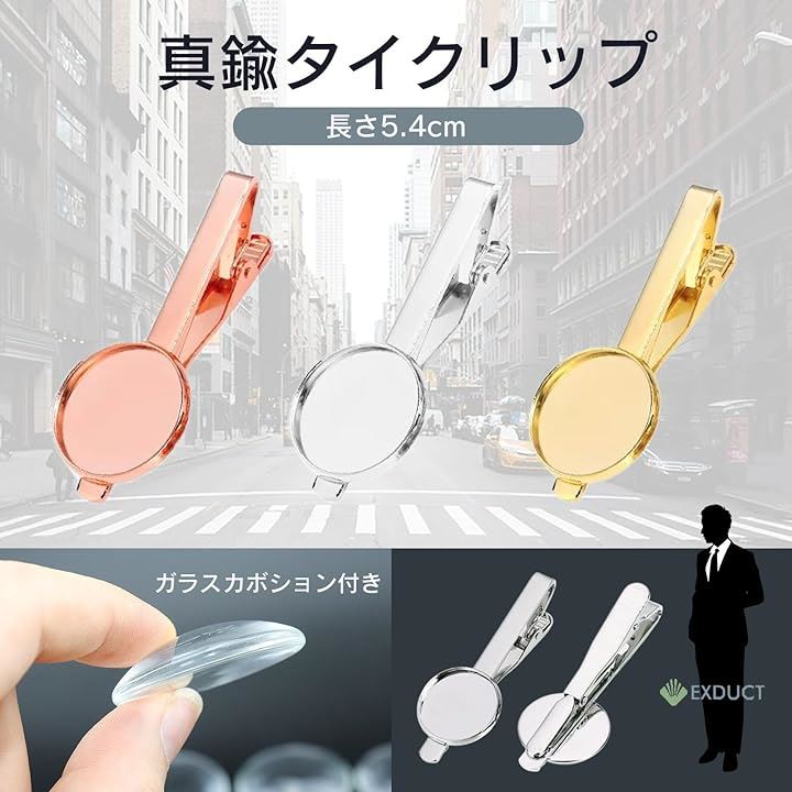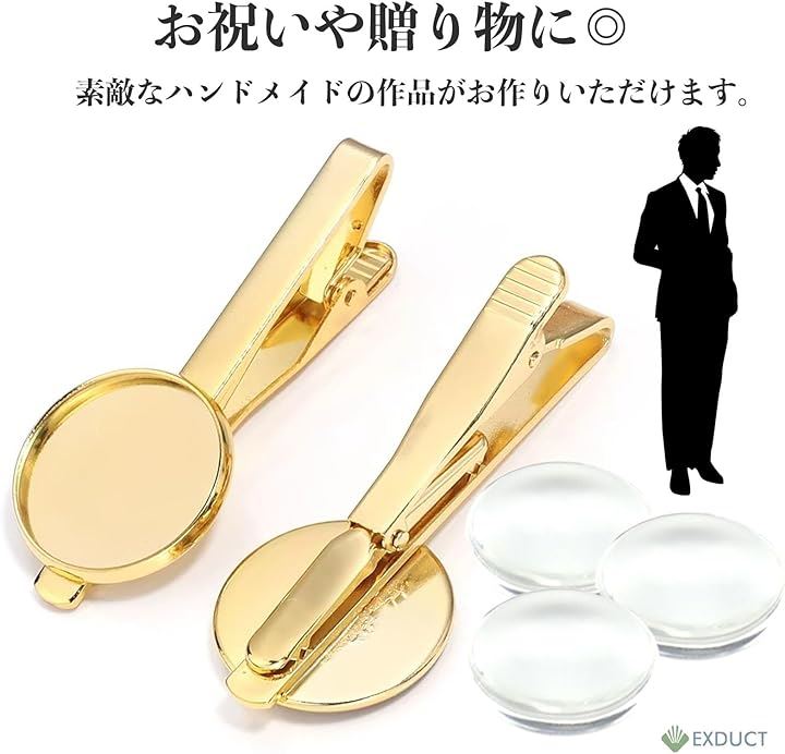 真鍮タイクリップ ネクタイピン タイバーセット トレイ ガラスカボション付き ファッション シンプル 結婚式 誕生日 ビジネス スーツ