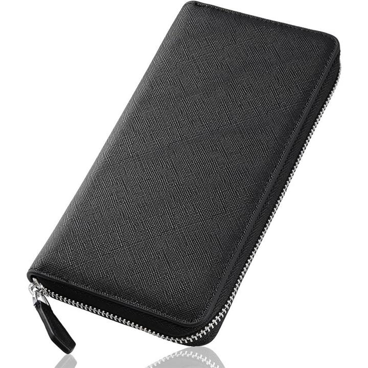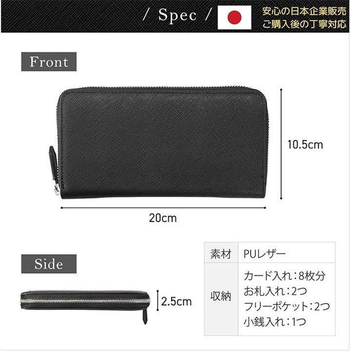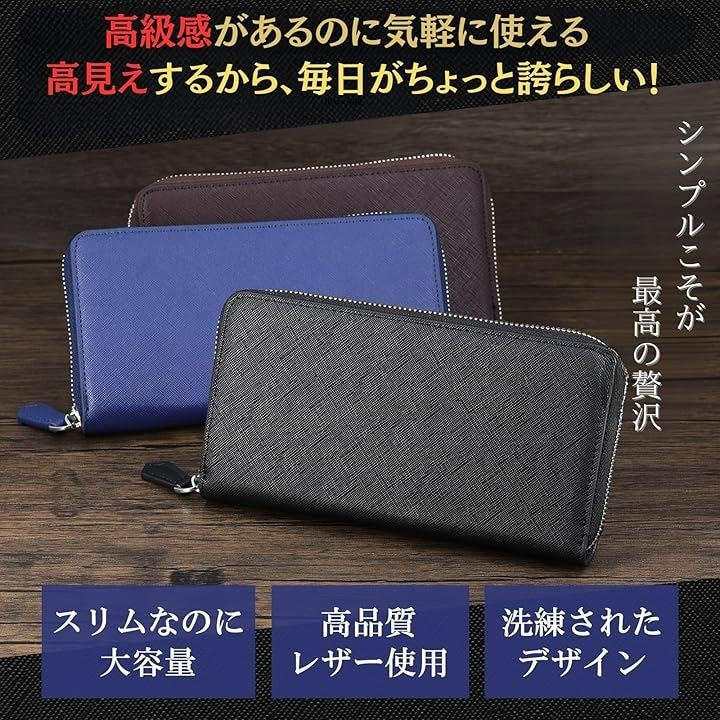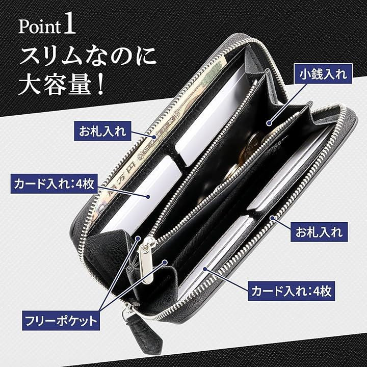 財布 黒 長財布 本革 メンズ長財布 大容量 ラウンドファスナー 仕分け財布 カード8枚収納 大学生にも人気 オシャレ