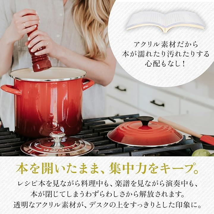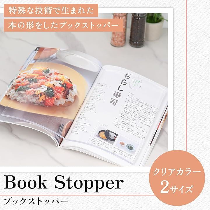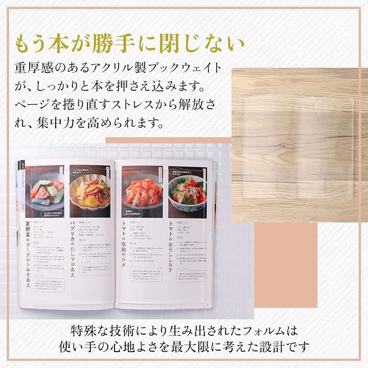 ブックストッパー 本、ピタッと。 アクリル ブックウェイト 文鎮 参考書 レシピ本 防汚 透明