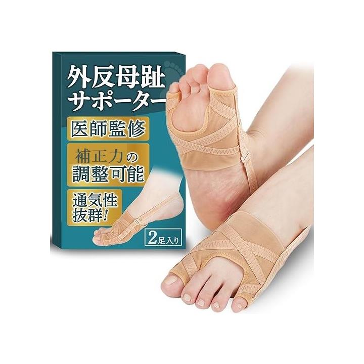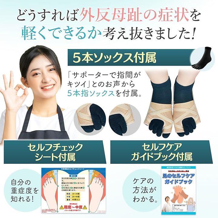 サポーター 医師監修 5段階調整フック付き 足指を広げるセルフチェックシート セルフケアガイド付き 2枚入り ベージュ