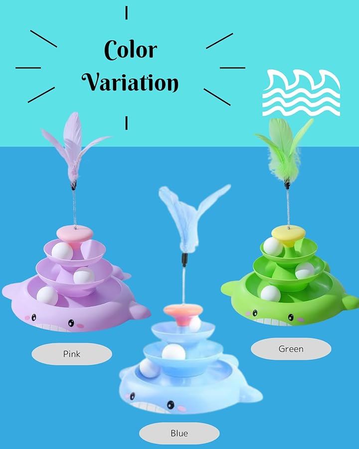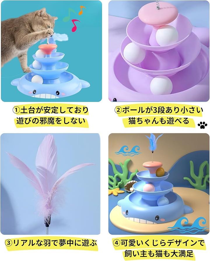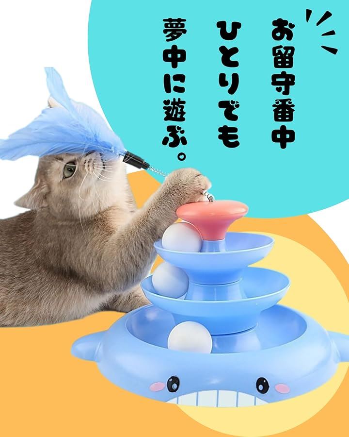 Modern neco くるくるクジラボールタワー 運動不足解消 お留守番 おもちゃ ひとり遊び 運動おもちゃ 猫じゃらし付き 3色展開