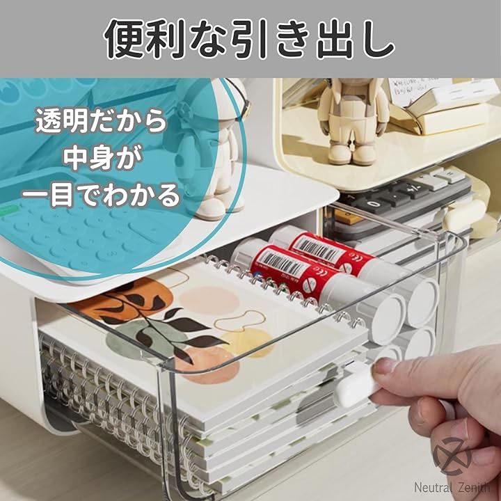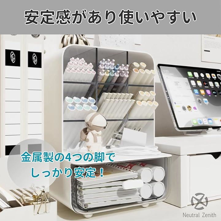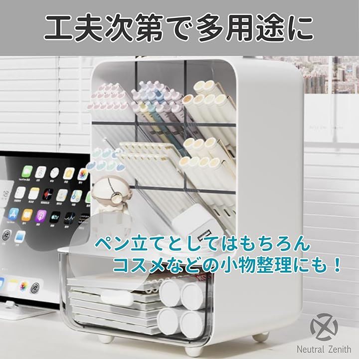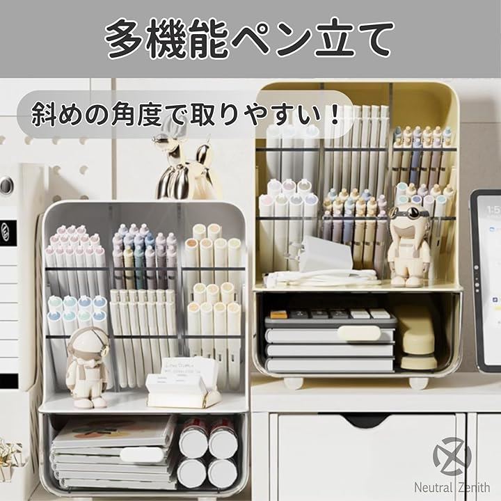 ペン立て 文房具 収納 斜め 仕切り デスク用 多機能 分類 事務用品 透明引き出し付き 大容量