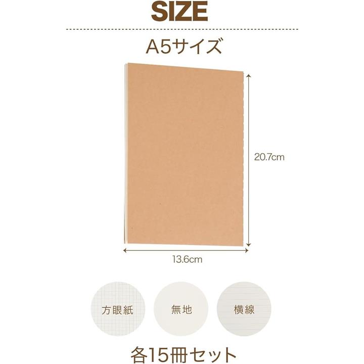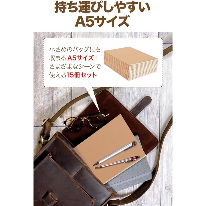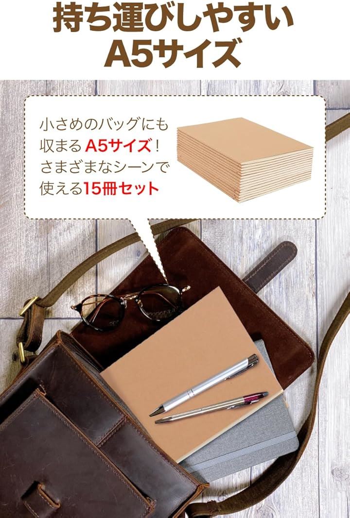 AllBright ノート 文房具 メモ帳 日記 勉強用 シンプル 糸綴じ A5 15冊セット