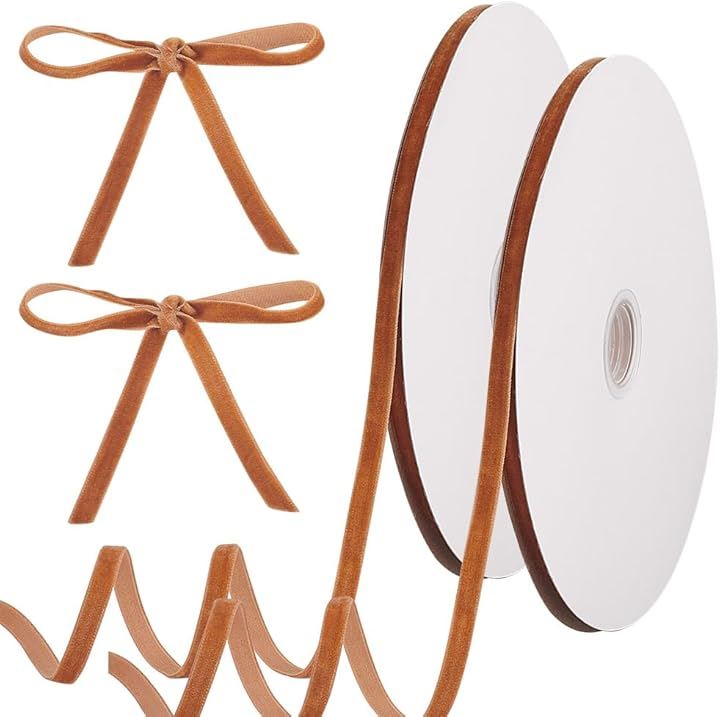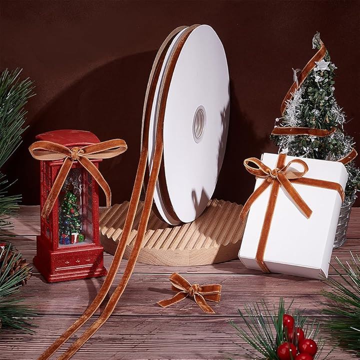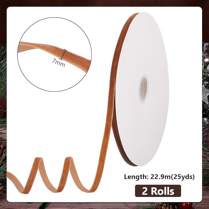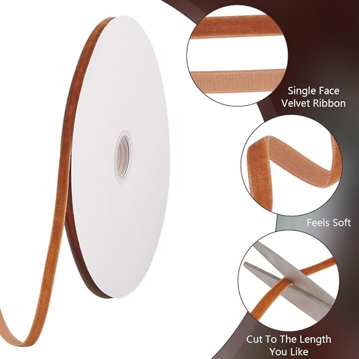 46m ベルベットリボン ヴィンテージ ブラウンリボン 織ベルベットトリム 幅7mm 片面ベルベットリボン ロール ギフトラッピング装飾 パーティー ウェディング アート クラフト用 DIY 手芸用品 アクセサリーパーツ ハンドメイド 装飾用 服飾 デコレーション用