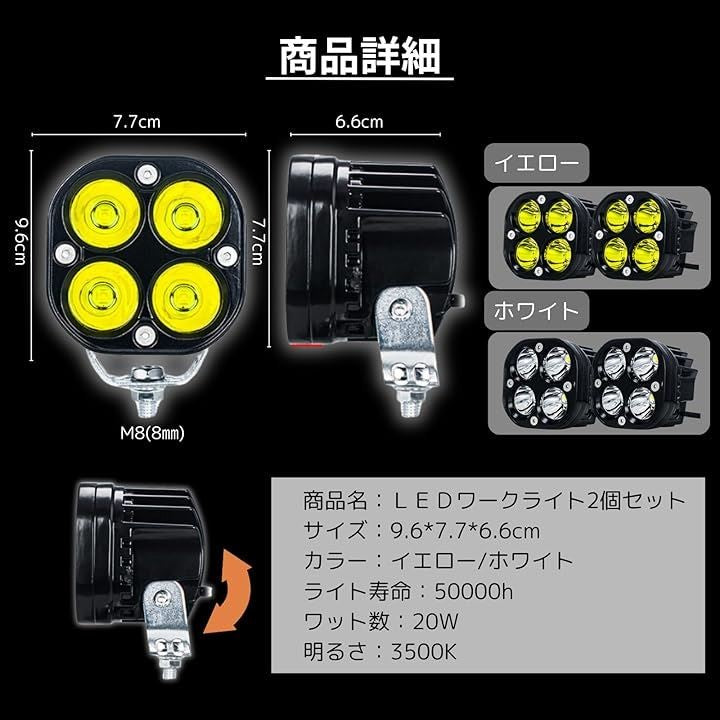 作業灯 LED ワークライト バイク 汎用 投光器 12V 24V 40W 防水 防塵 補助灯 車外灯 現場作業 農作業