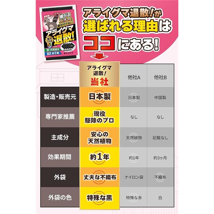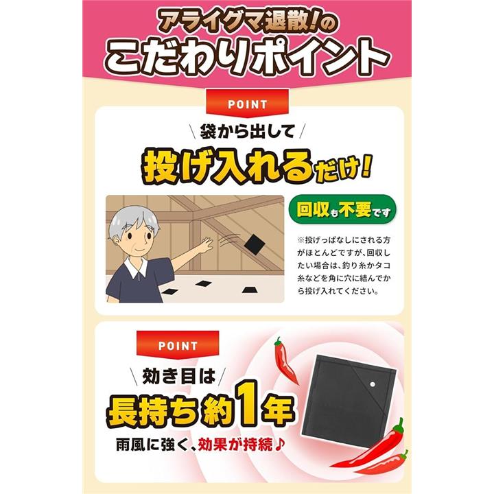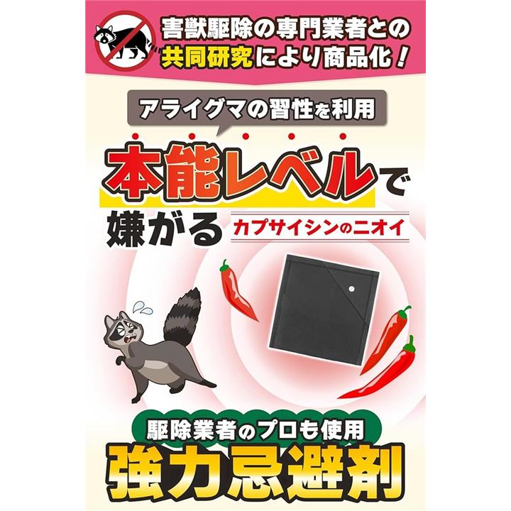アライグマ 忌避剤 撃退グッズ 内外兼用強力プロ仕様・天然香料だから安心・効き目長持ち約1年便利な結束ベルト付 5枚入 2.5~5畳用