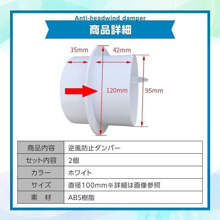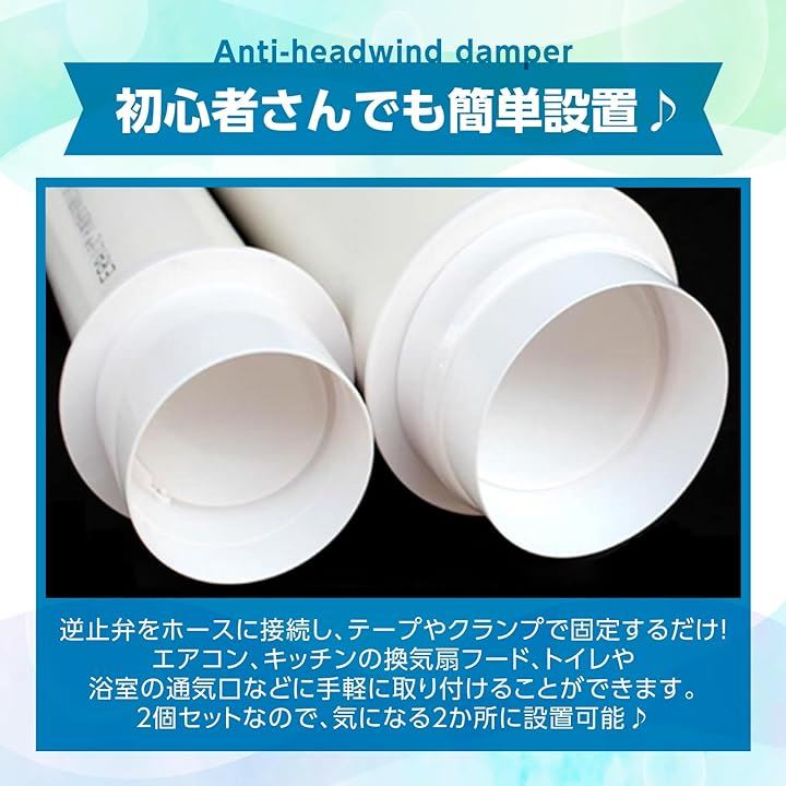 逆風防止ダンパー 2個セット 逆止弁 パイプ接続用 換気口