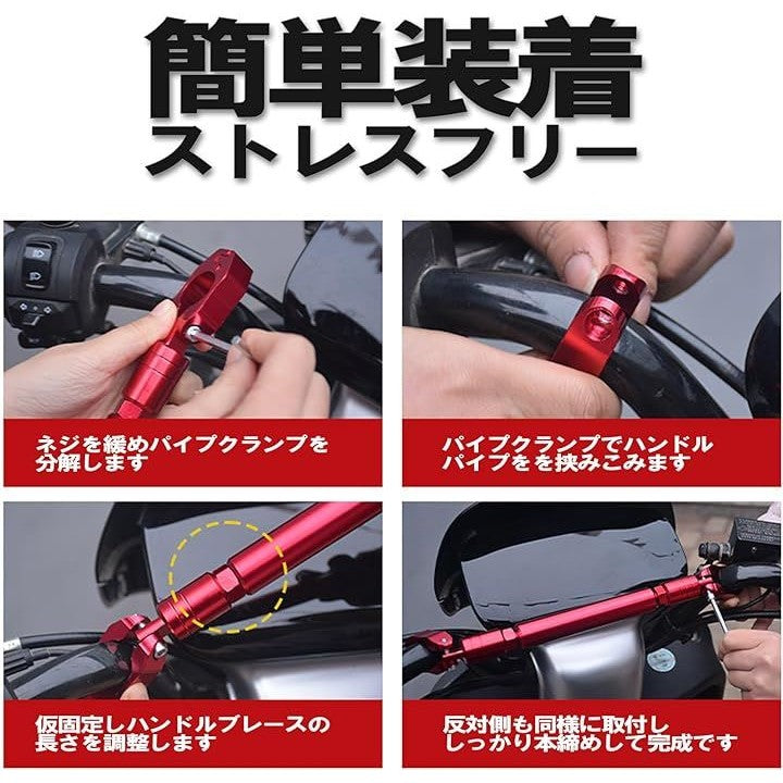 ハンドルブレース バイク 用 φ22mm ハンドルバー バランス クロスバー スタビライザー ぶれ防止 転倒対策 振動軽減 カスタマイズ 汎用