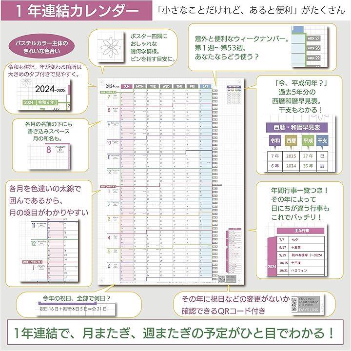2年分のカレンダー 1年連結 ポスター GRID 7月始まり 日曜始まり 2024 2025