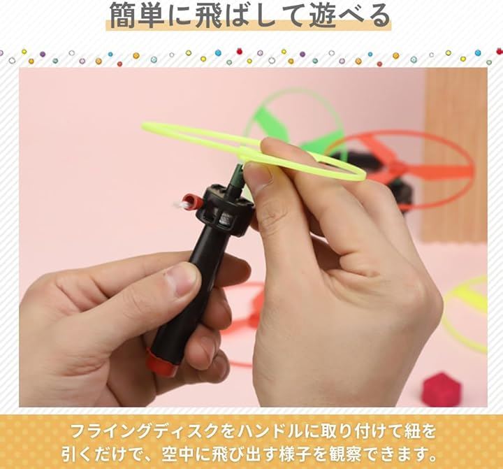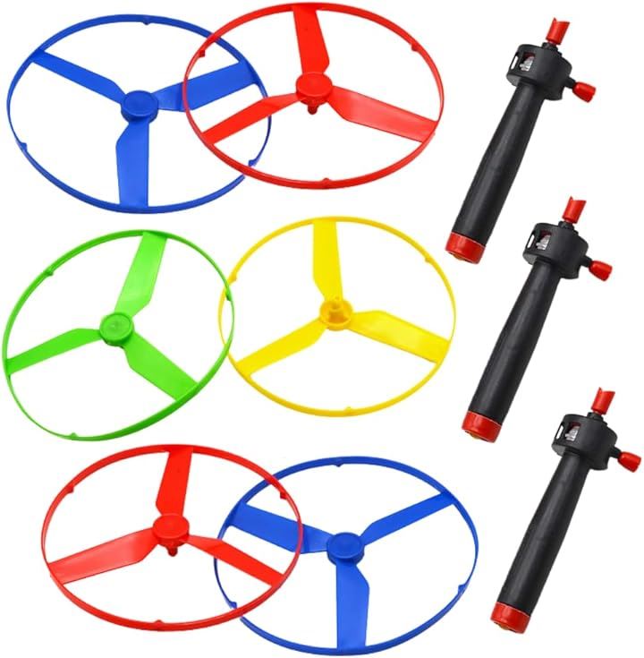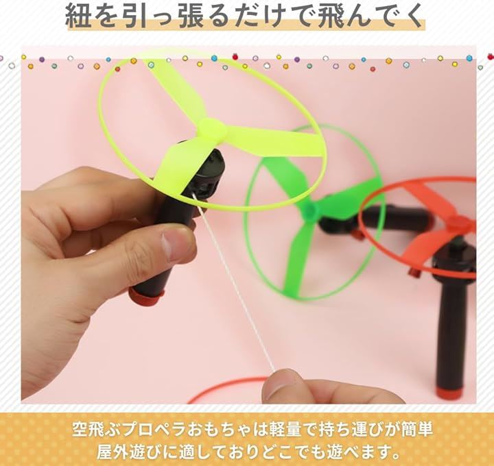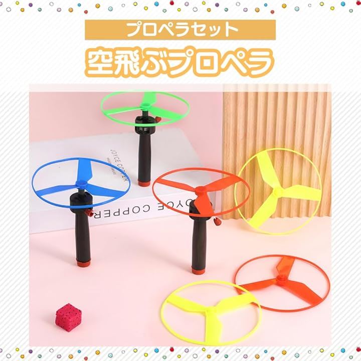 プロペラ 空飛ぶ おもちゃ プラスチック 野外 公園遊び プロペラ6個 ハンドル3個