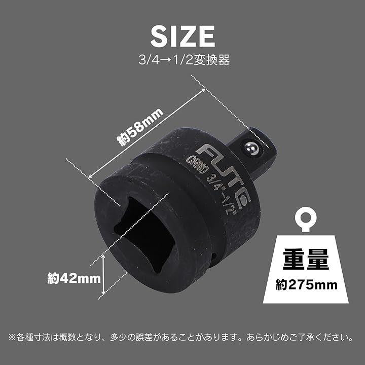 互換品 トルク レンチ タイヤ 交換 ソケット インパクト 変換 アダプター ジョイント アタッチメント 工具 汎用 1/2 3/4