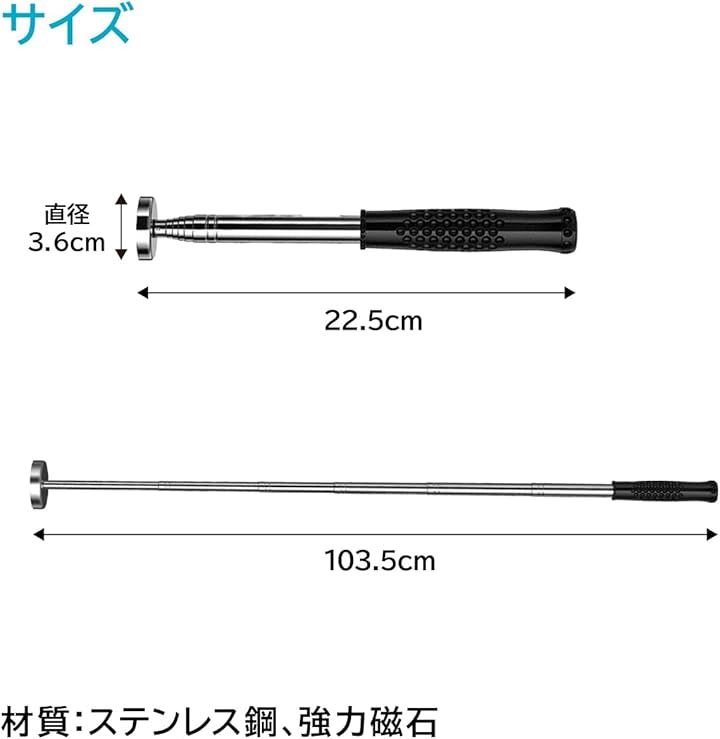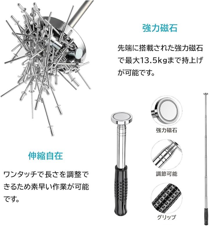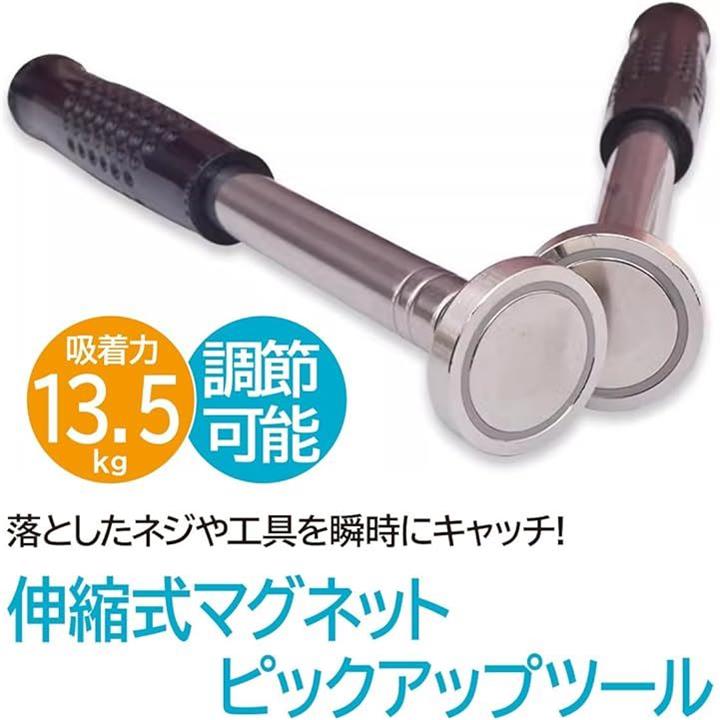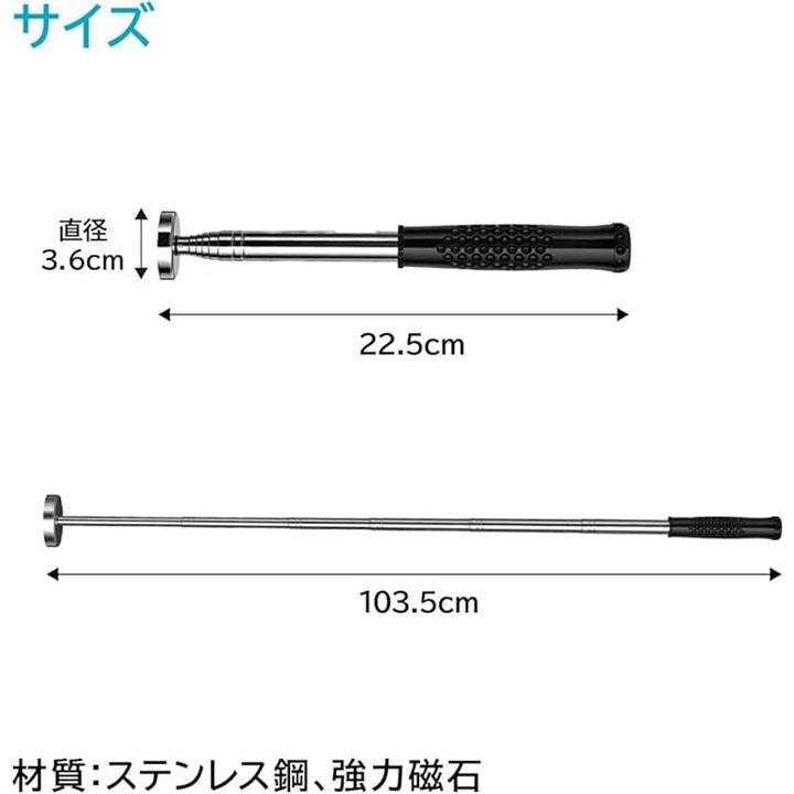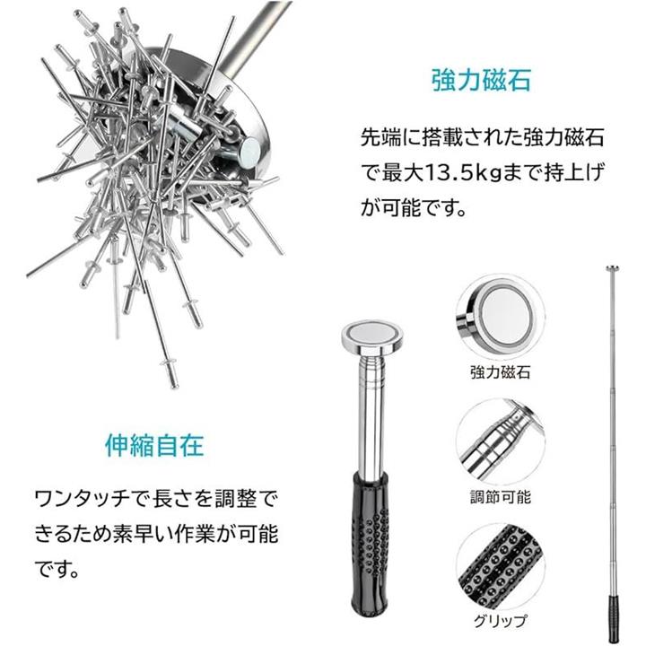 伸縮式マグネットピックアップツール 磁石棒 吸着力13.5kg 調整可能 長さ22.5~103.5cm