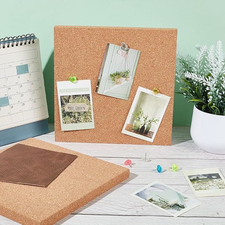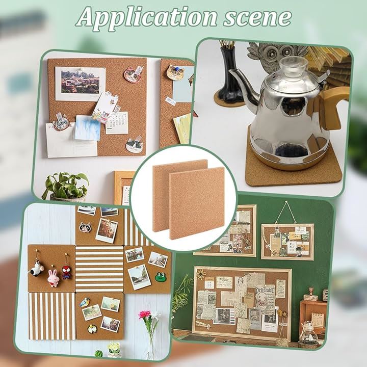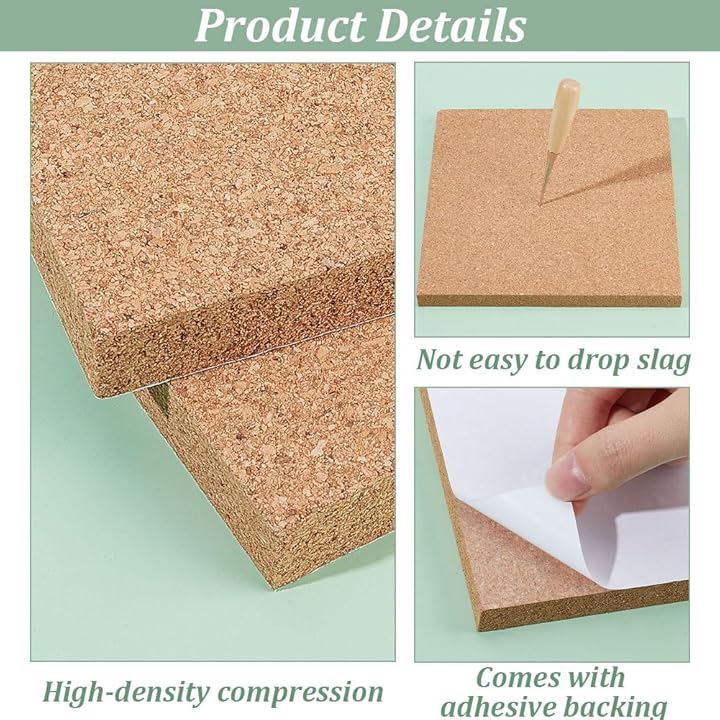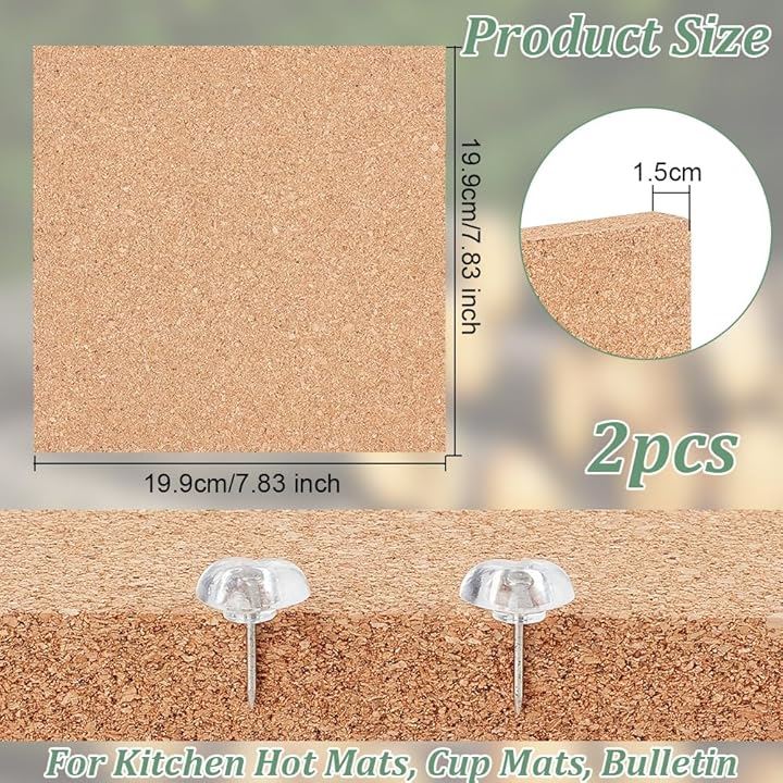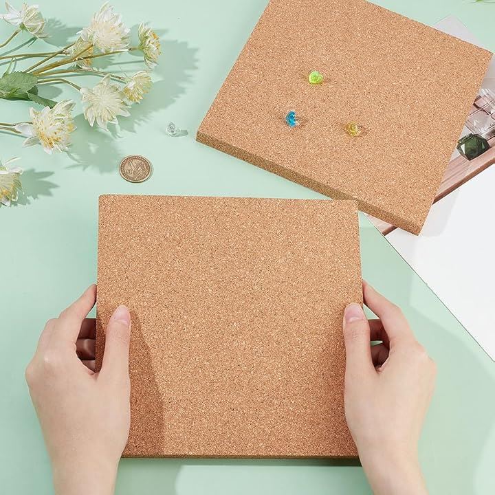 2枚 粘着コルクボード 厚さ15mm コルク断熱ボード コルク掲示板 コルクシート 正方形 トリベット 宣伝欄 コップ敷き 壁掛け 写真壁 伝言板 キッチン用品 カフェ 室内装飾用 ハンドメイド