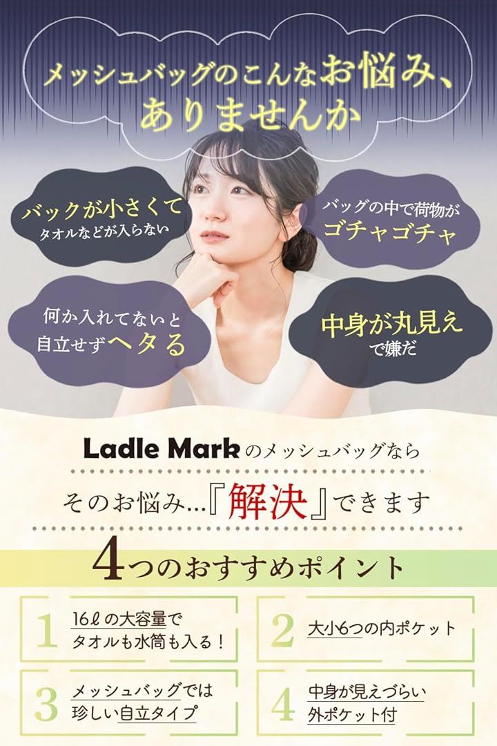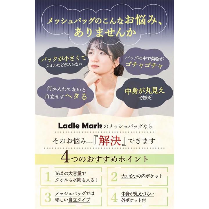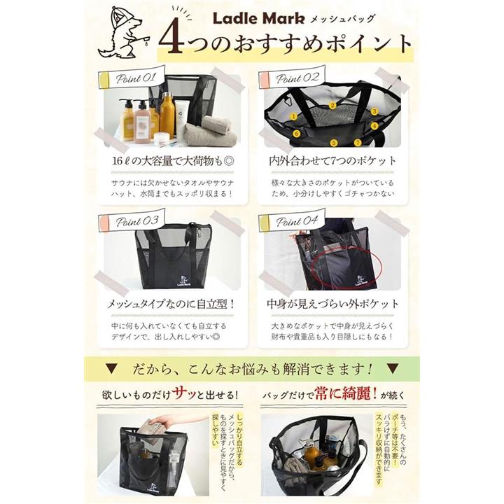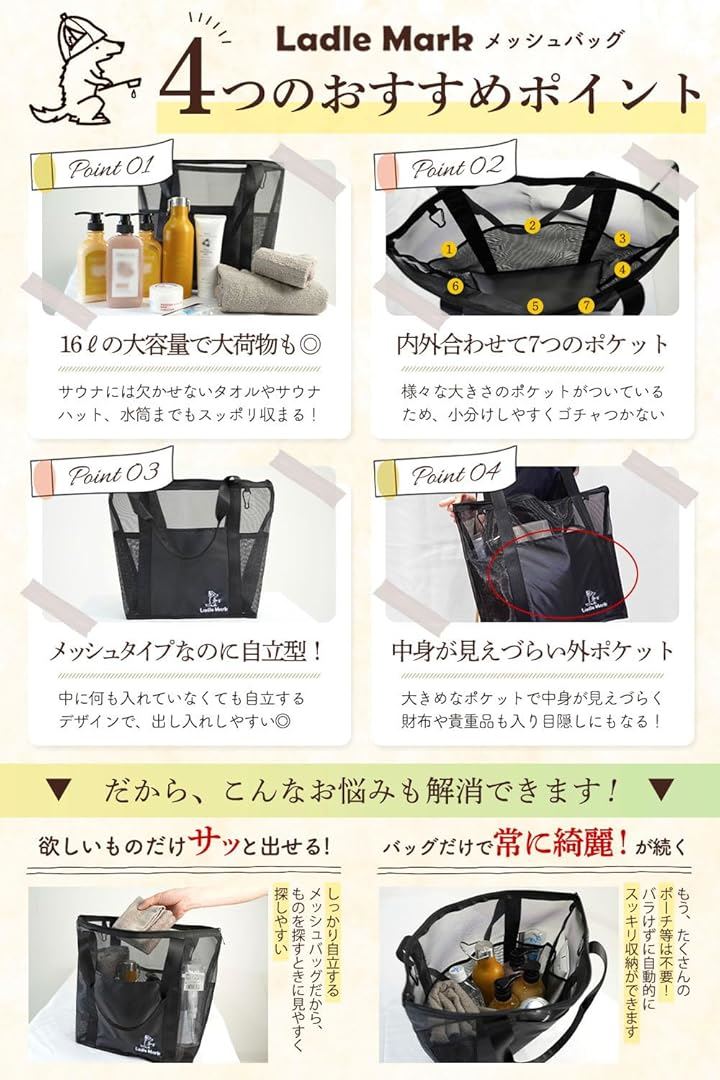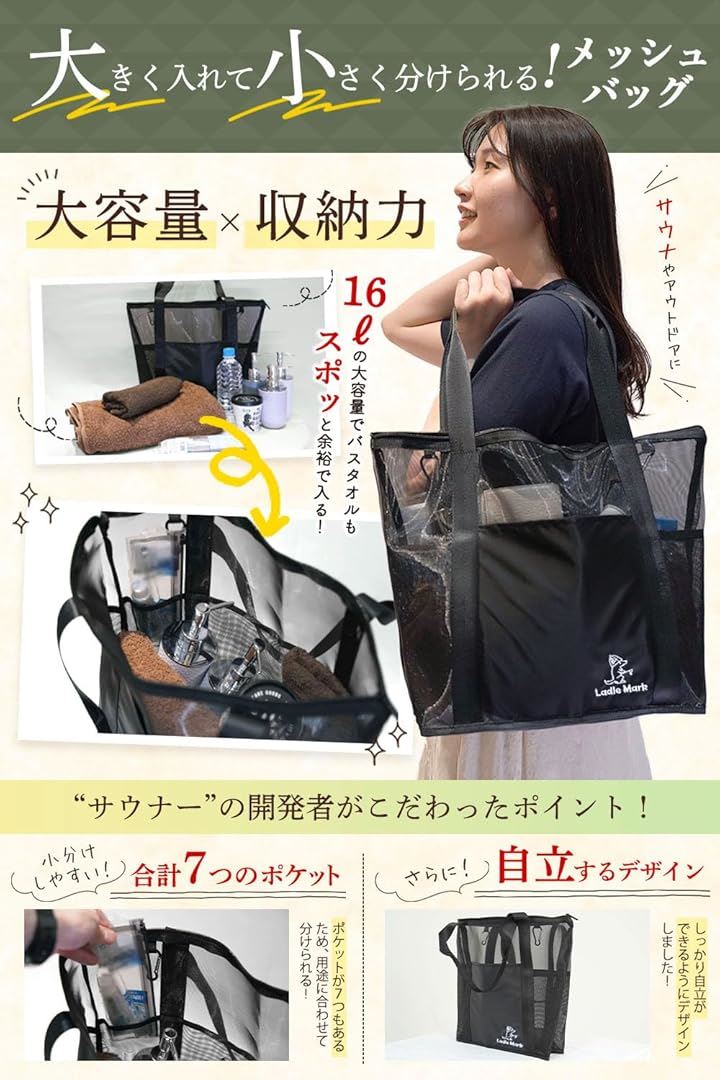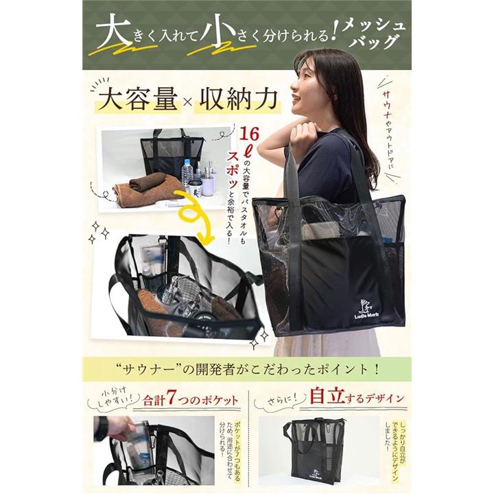 ハイロバッグ サウナ メッシュ スパ 温泉 プール ジム 大容量 x 収納力 自立 ラドルマーク ビーチ 銭湯