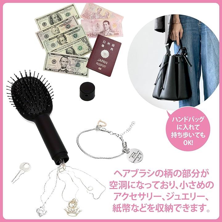 ブラシ型 シークレットボックス ヘアブラシ 隠し金庫 貴重品 持ち運び 旅行