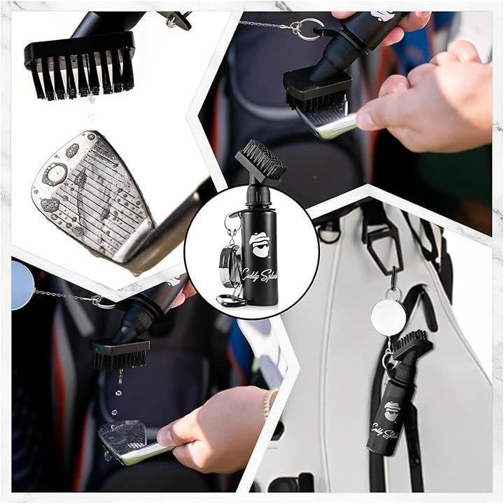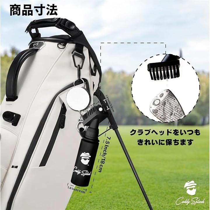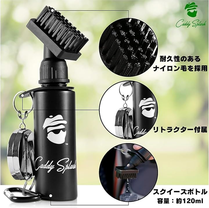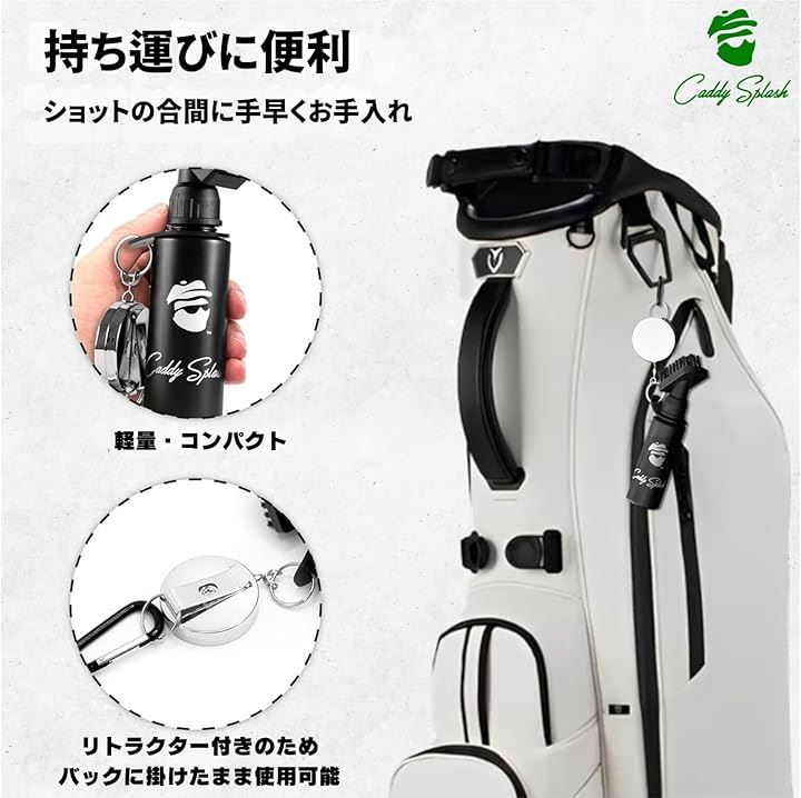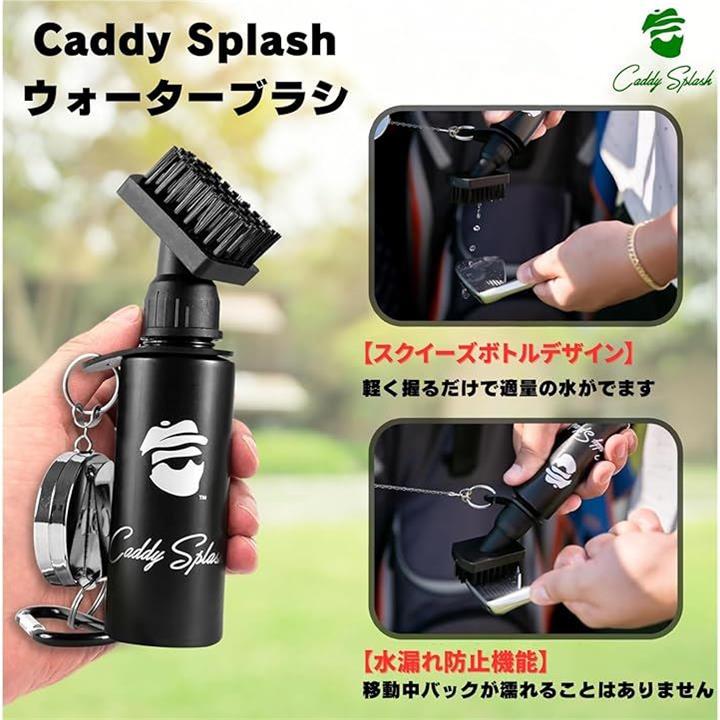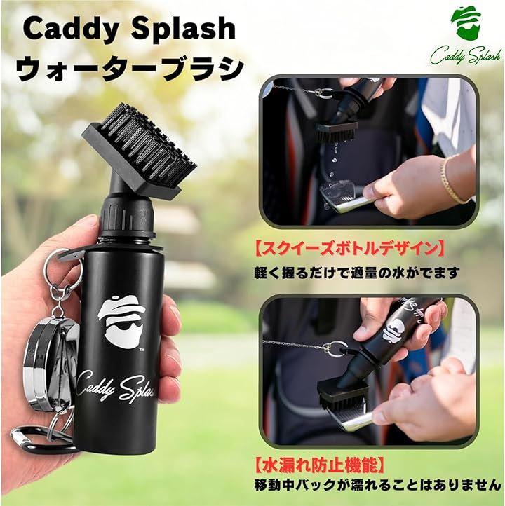 ゴルフウォーターブラシ ゴルフクラブ 掃除 クリーナー 水漏れ防止 リトラクター カラビナ付