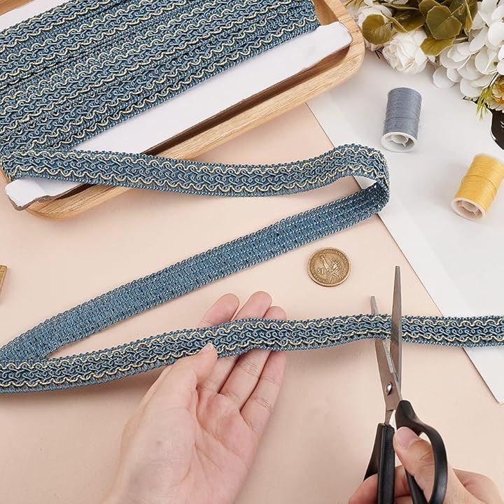 12m ブルー 編組トリム ポリエステル 編組レース リボン 24mm 生地トリム 室内装飾 縫製工芸品 衣類 カーテン ジュエリー コスチューム ホーム DIY デコレーション 服 アクセサリー レース裁縫 服装素材 手芸
