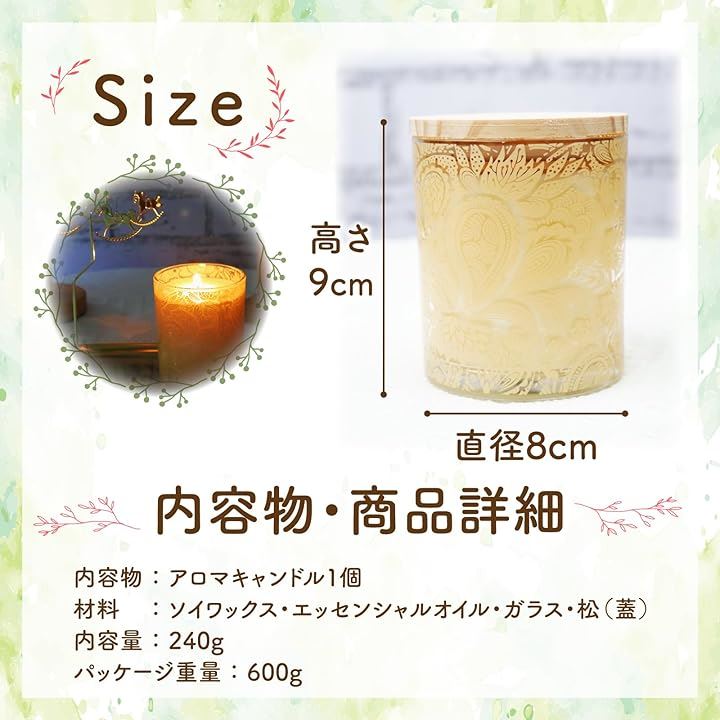 アロマキャンドル サンダルウッド&パチュリー 240g 天然素材 ソイワックス ギフト プレゼント