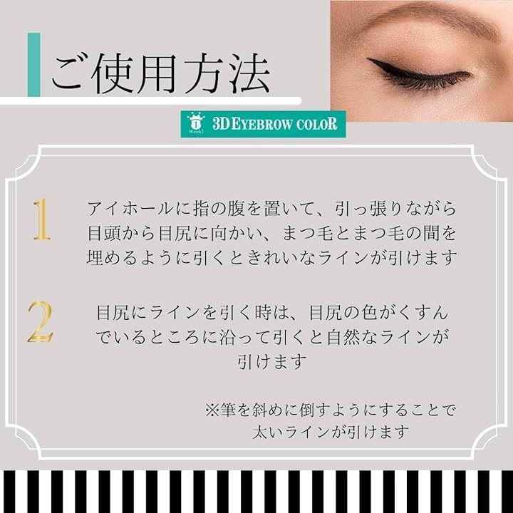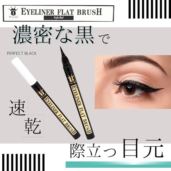 1Week。アイライナー リキッドタイプ/落ちないティント・筆ペンメーカーの漆黒・墨造りの技術を活かし誕生しました/汗・水・涙に強いウォータープルーフ処方・繊細なラインもしっかり引けます