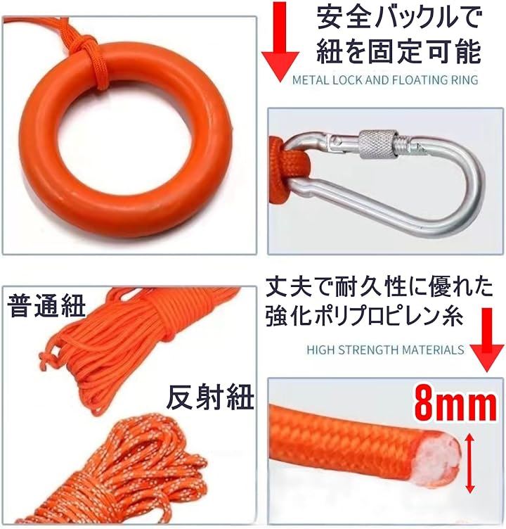 救命ロープ 浮輪 水に浮く 釣り 8mm 多目的 水泳 プール a528