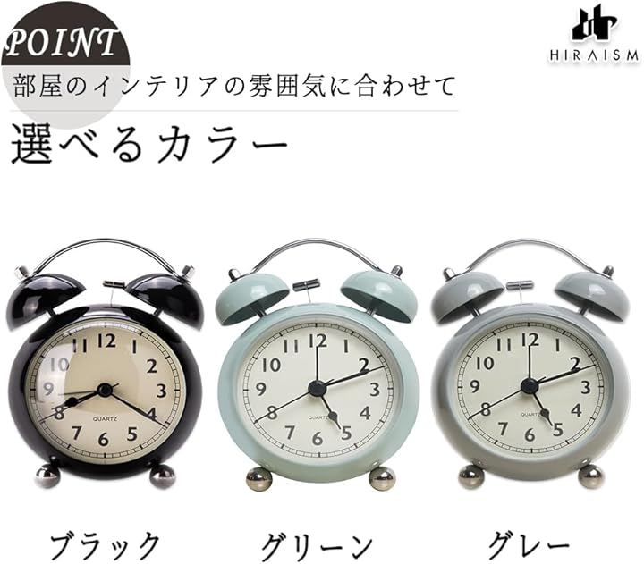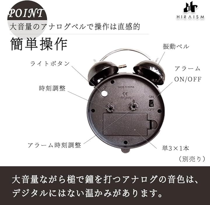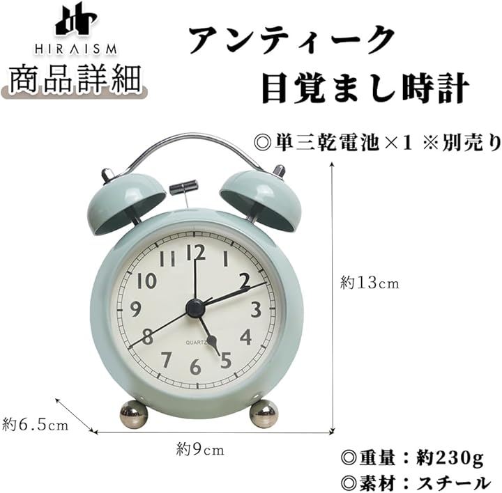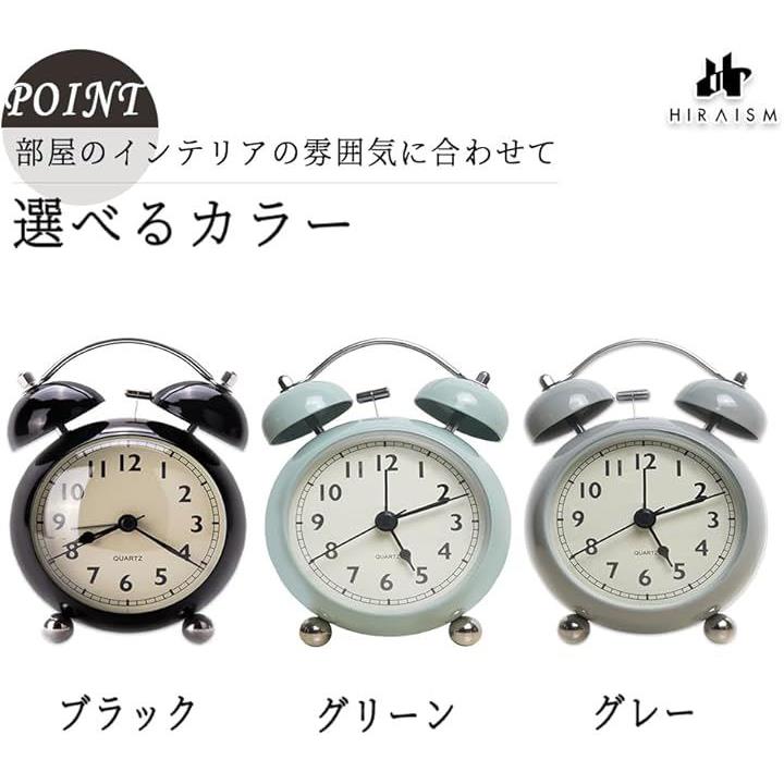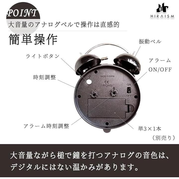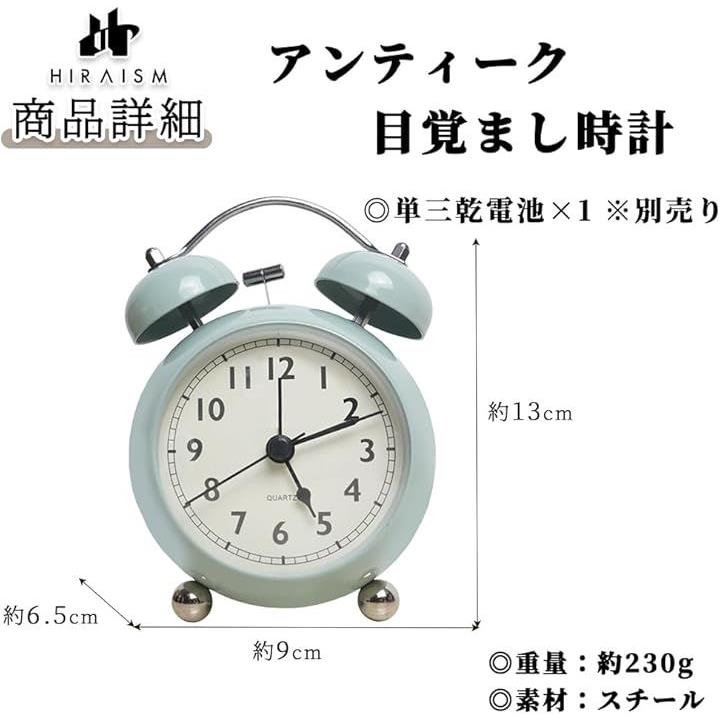 目覚まし時計 アナログ レトロ アンティーク 大音量 ベル式 アラーム 電池式