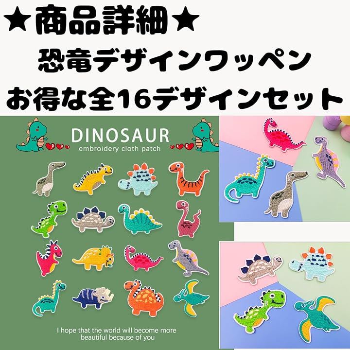 ワッペン 恐竜 アップリケ 男の子 アイロン 動物 キャラクター 刺繍 可愛い