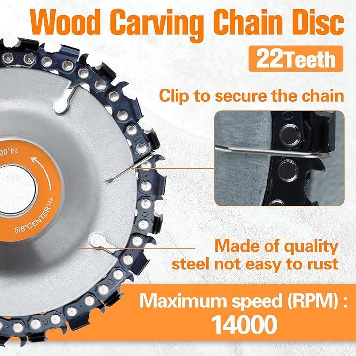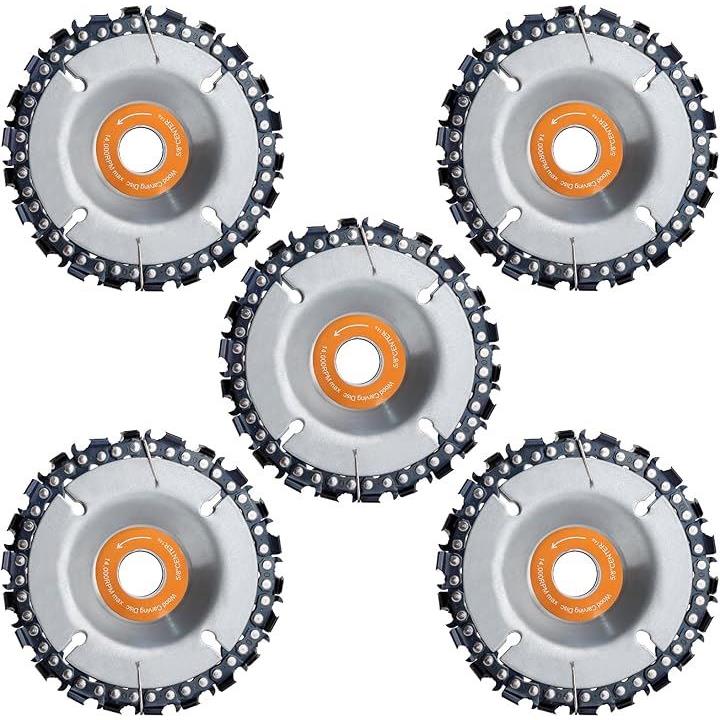 木彫チェーンディスク チェーンソー用ディスク砥石 丸型チェーンソー用ホイール チェンソー用ディスク研削ホイール ディスクグラインダー 刃 木材 切断 5本セット 直径100mm 穴径16mm 22歯切り 枝切り