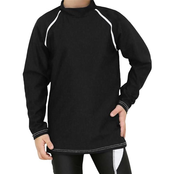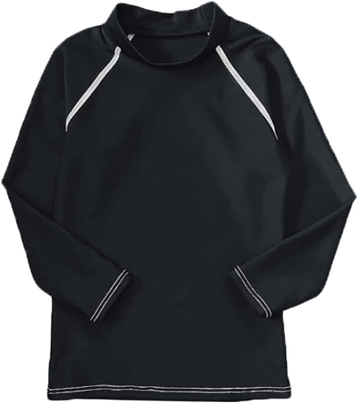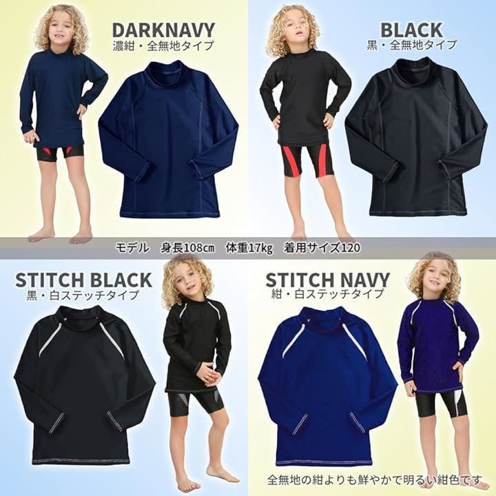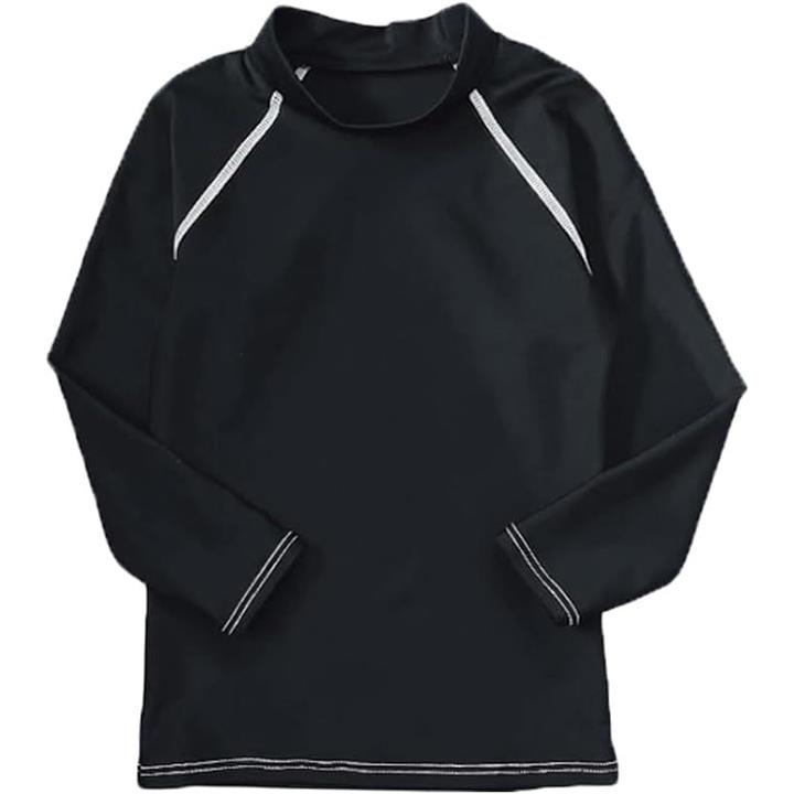 [RSSR] ラッシュガード 「学校用・ハイネック・フードなし・ファスナーなし・指穴なし・無地」 長袖 キッズ ジュニア 子供 スクールラッシュガード スクール水着 UVカット (120, ステッチ黒) |