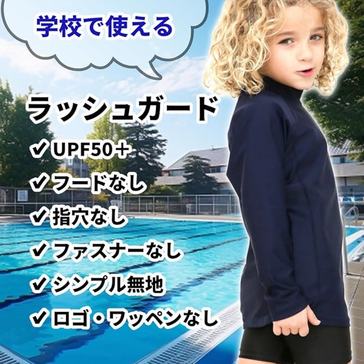 「学校で使えるラッシュガード」多くの学校でパーカータイプやジップアップタイプのラッシュガードはNGとなっています。