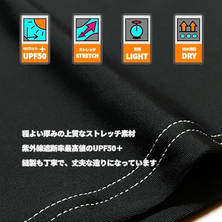 「UPF50+で日焼け対策もバッチリ」紫外線カットUPF50+生地を採用。