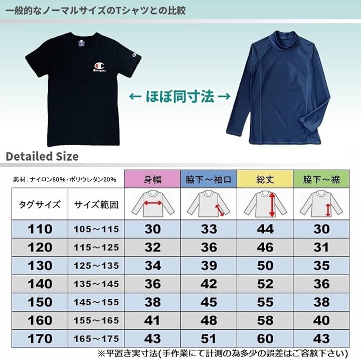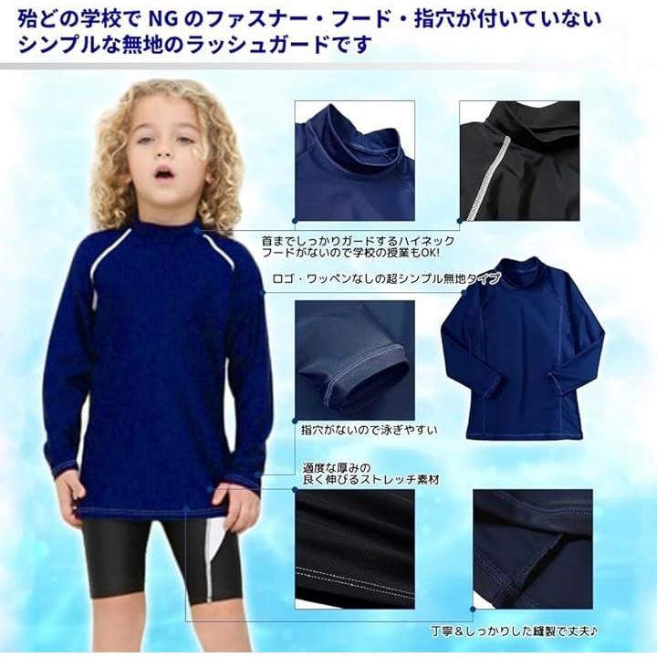 [RSSR] ラッシュガード 「学校用・ハイネック・フードなし・ファスナーなし・指穴なし・無地」 長袖 キッズ ジュニア 子供 スクールラッシュガード スクール水着 UVカット (170, 全無地濃紺) |