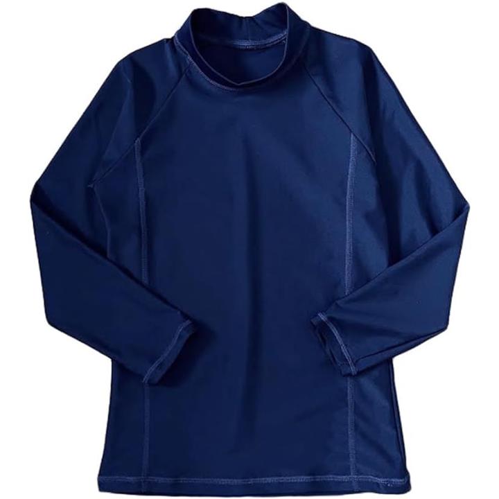 [RSSR] ラッシュガード 「学校用・ハイネック・フードなし・ファスナーなし・指穴なし・無地」 長袖 キッズ ジュニア 子供 スクールラッシュガード スクール水着 UVカット (110, 全無地濃紺) |