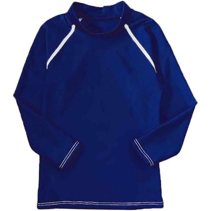 [RSSR] ラッシュガード 「学校用・ハイネック・フードなし・ファスナーなし・指穴なし・無地」 長袖 キッズ ジュニア 子供 スクールラッシュガード スクール水着 UVカット (120, ステッチ紺) |